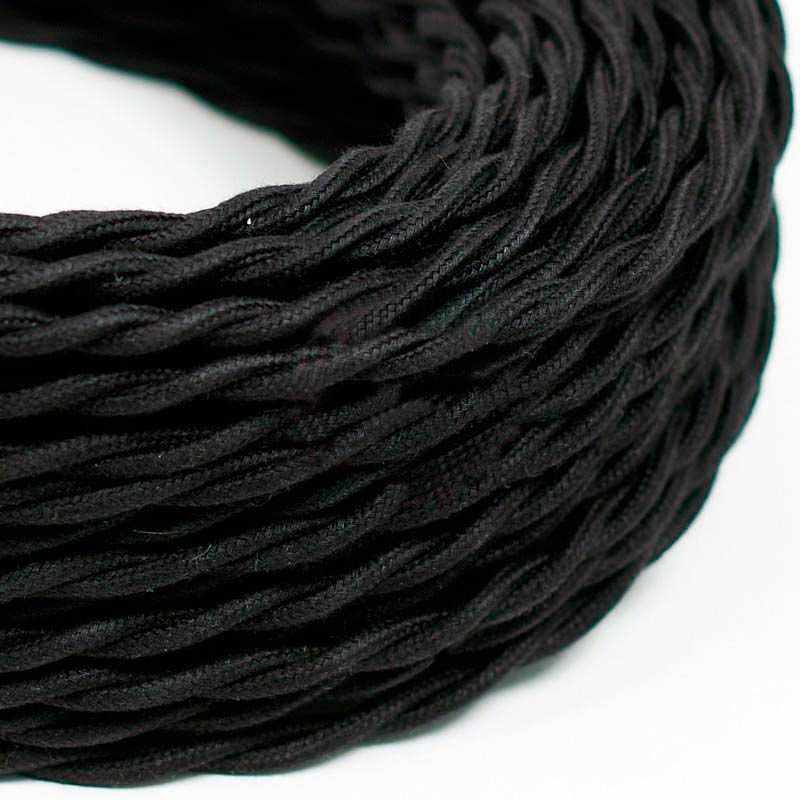 Провод витой 2-жильный Черный 2х0,5мм (ГОСТ) в тканевой оплетке. Многожильный электрический провод премиум-класса с двойной изоляцией, покрытый плетеным текстильным слоем, придающим изделию уникальный внешний вид.