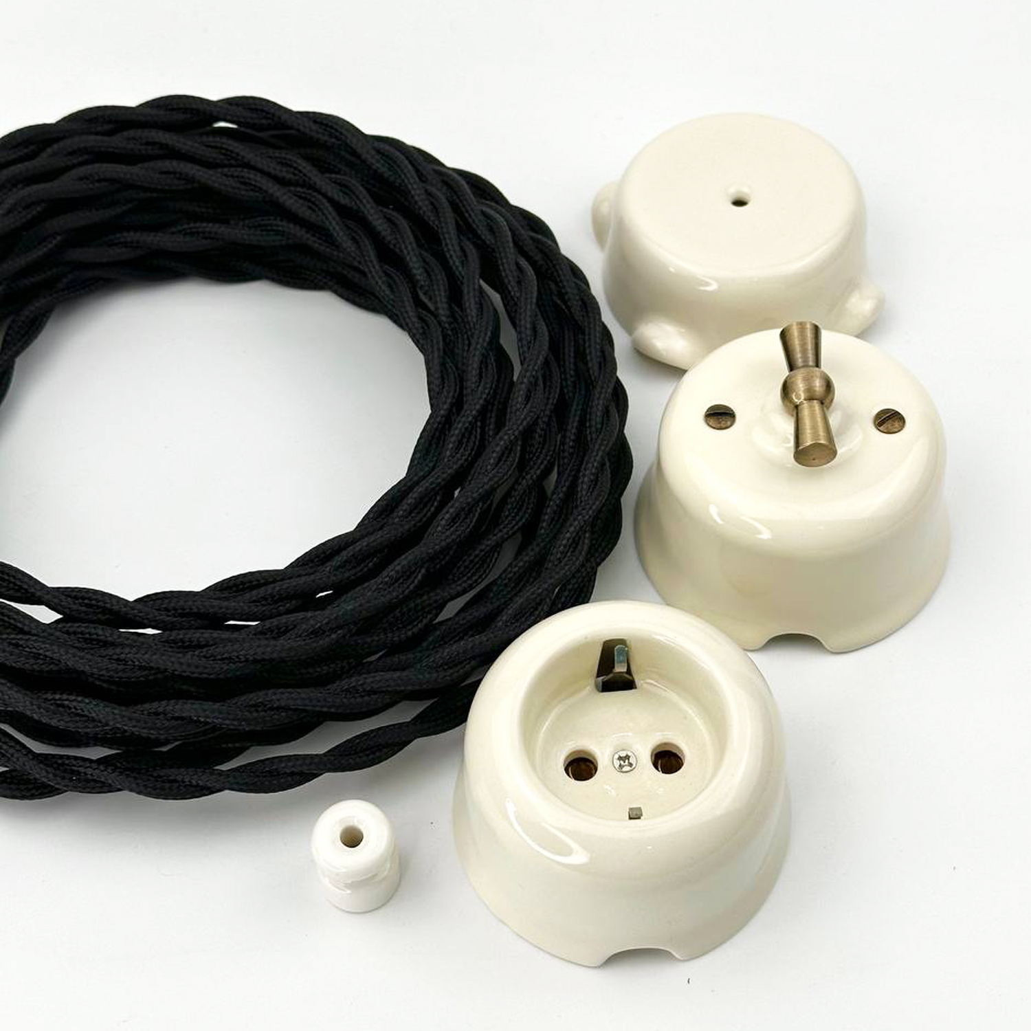 Это отличное решение для дизайнерской наружной электропроводки в квартире или доме, замена стандартных проводов на более оригинальный вариант. Ретро кабель для наружной проводки смотрится "теплее" пластикового, его цвет может быть подобран в тон интерьера или светильника, при этом тканевый провод имеет те же технические характеристики.