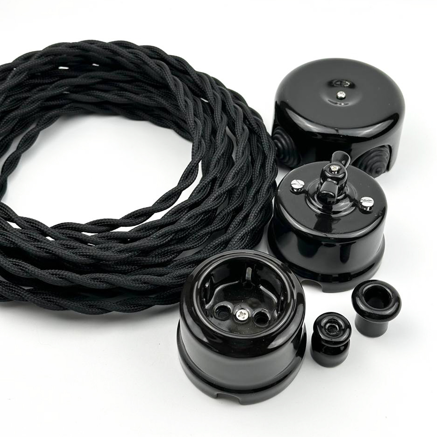 Провод витой 2-жильный Черный 2х1,5мм (ГОСТ) в тканевой оплетке. Многожильный электрический провод премиум-класса с двойной изоляцией, покрытый плетеным текстильным слоем, придающим изделию уникальный внешний вид.