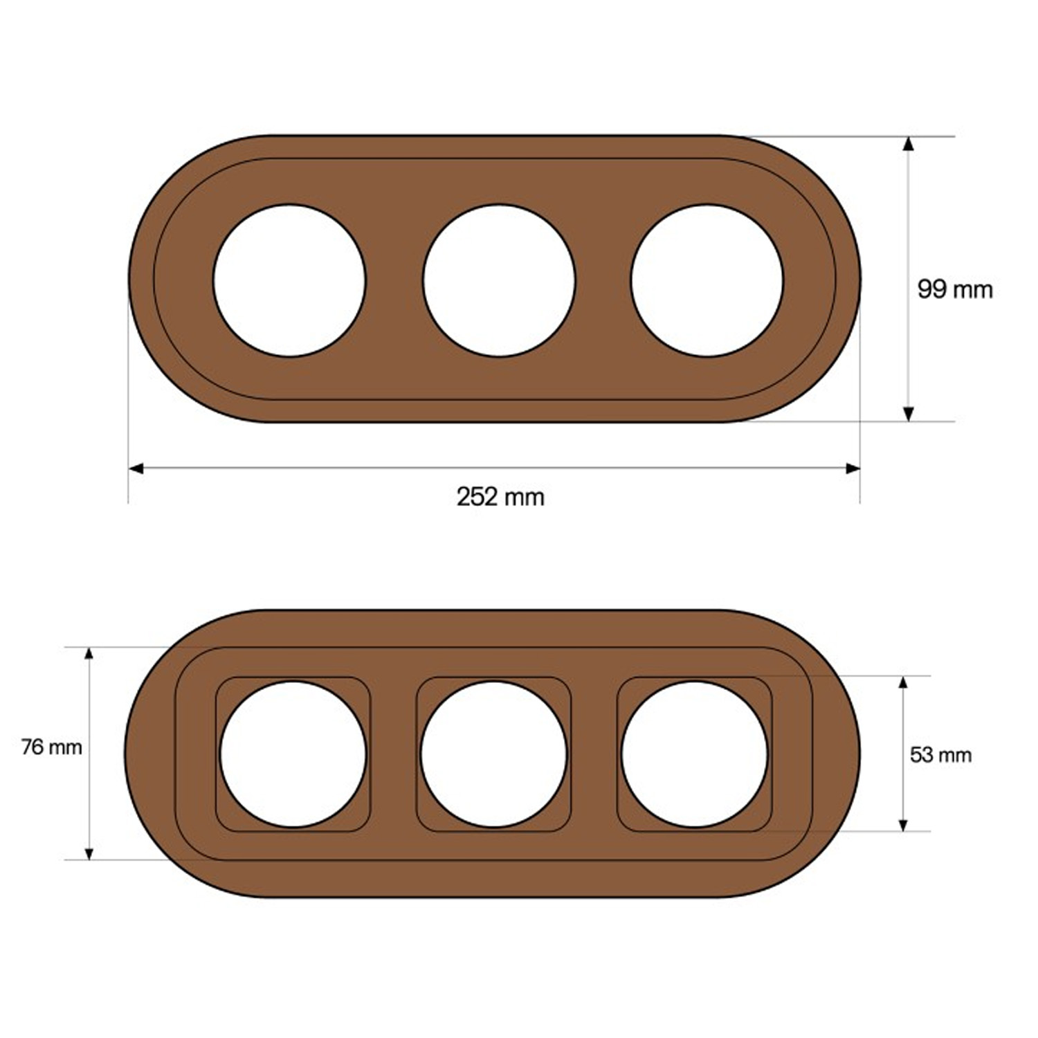 Рамка деревянная Keruida темная на 3 поста для скрытого монтажа