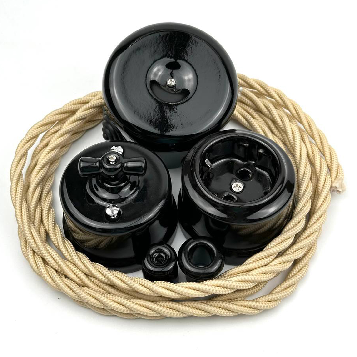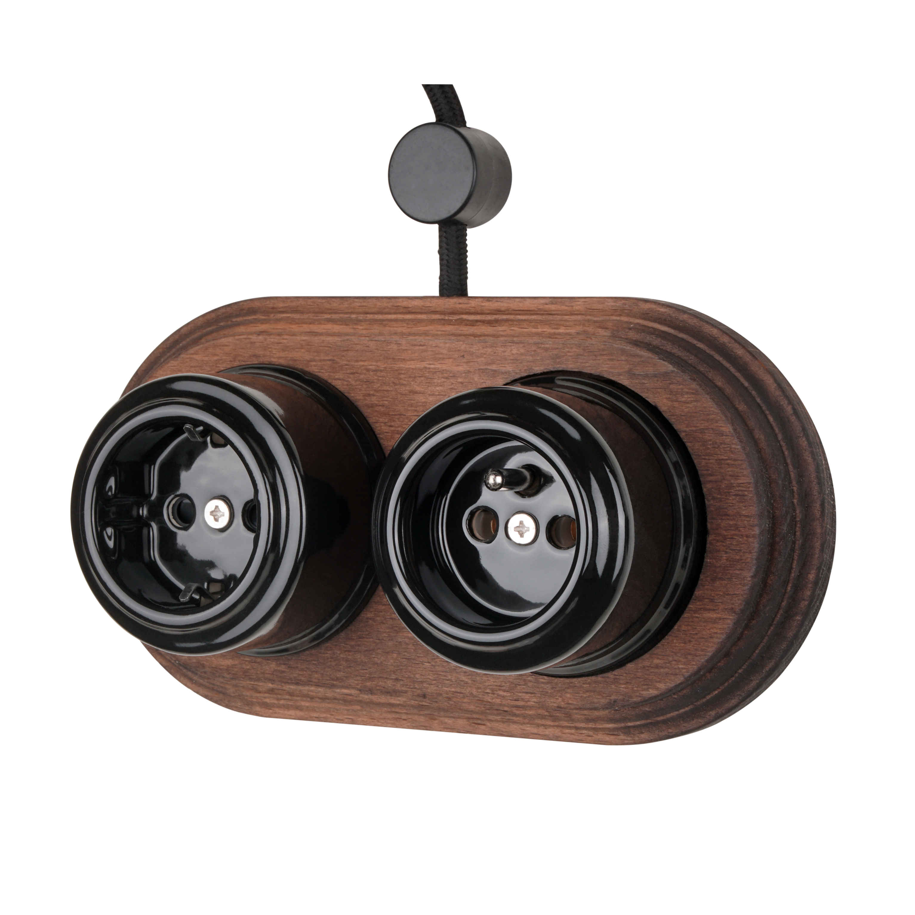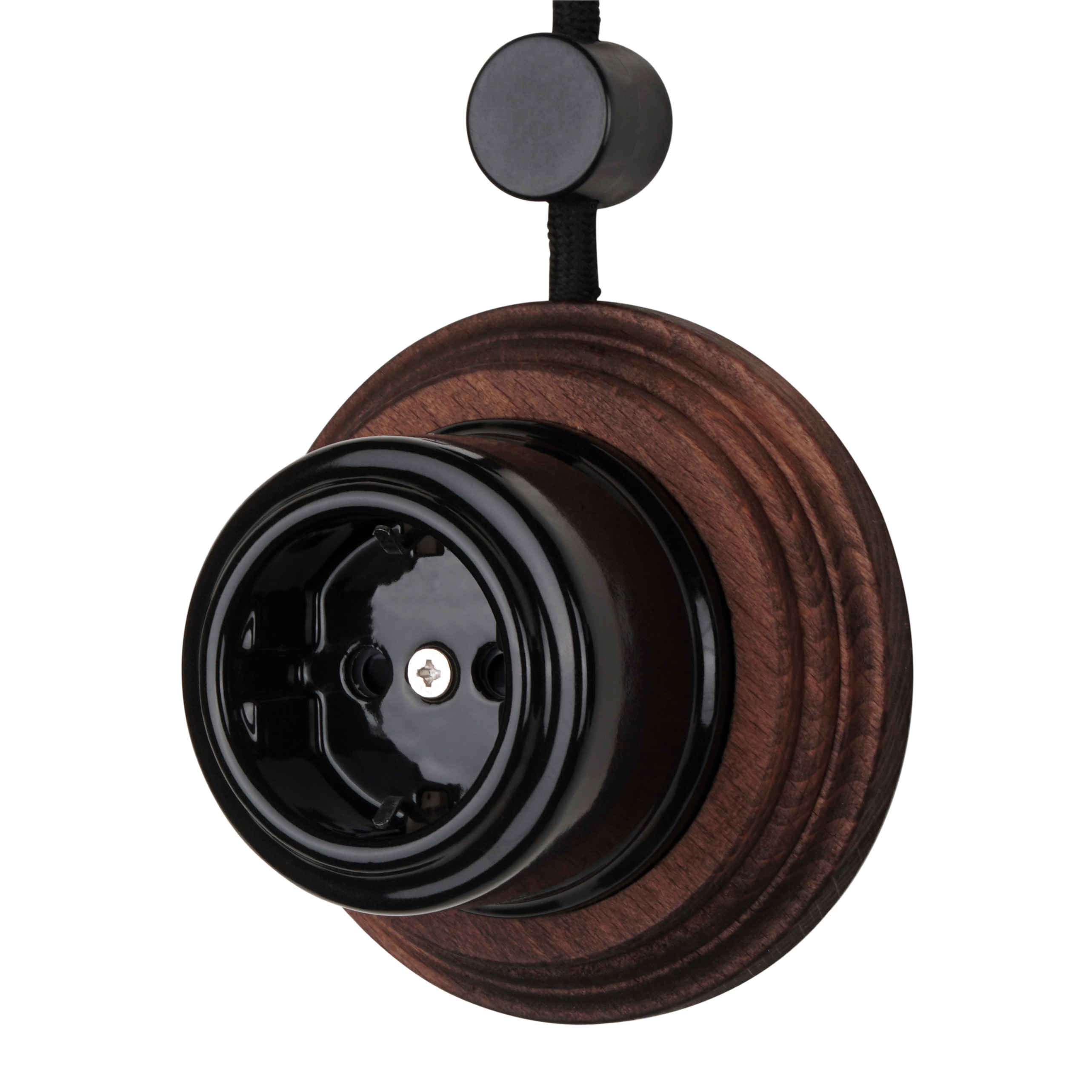 Керамическая розетка Keruida выполнена в винтажном стиле и идеально подходит для интерьеров с открытой ретропроводкой. Благодаря классической волнистой форме и черной глянцевой керамике она гармонично дополняет интерьеры в стиле лофт, кантри, шале, скандинавский или винтаж.