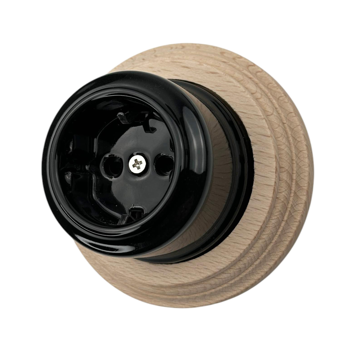 Ретро розетка керамическая Keruida черная с заземлением без рамки