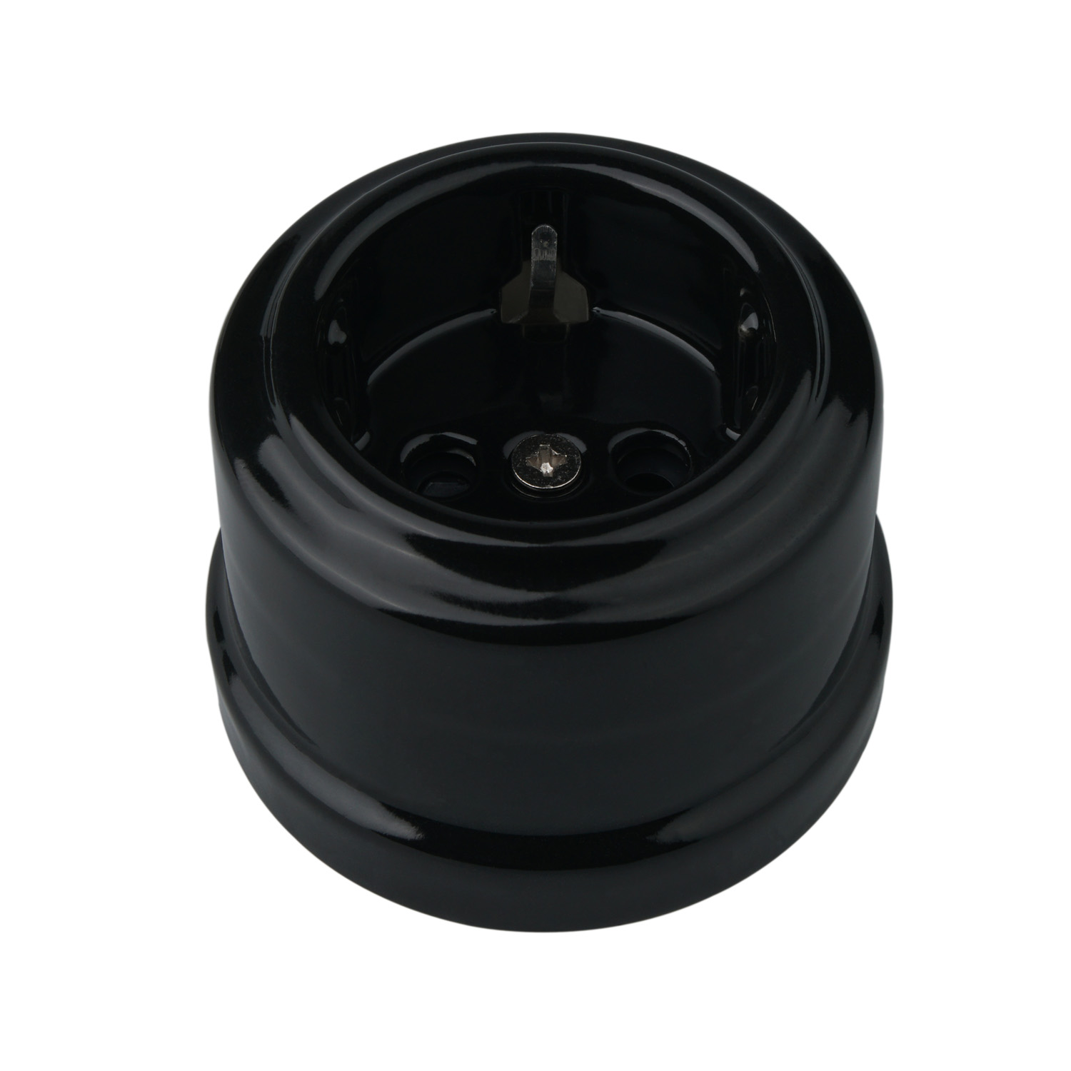 Ретро розетка керамическая Keruida черная с заземлением (без рамки)