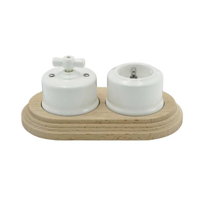 Ретро выключатель керамический Keruida белый, 2-клавишный (без рамки)