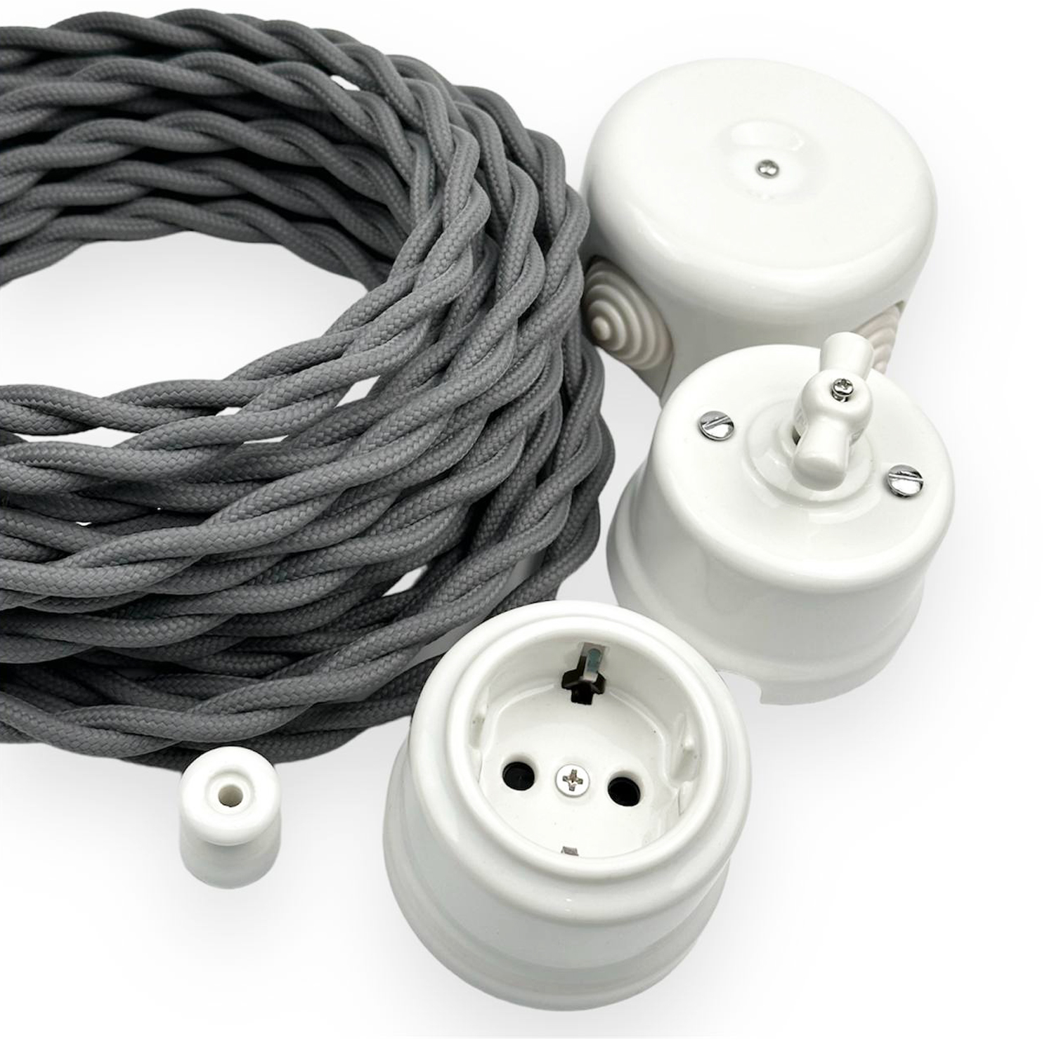 Корпус изготовлен из натуральной электротехнической керамики, которая отличается высокой прочностью и долговечностью. В производстве используется материал на основе оксида алюминия высокой степени очистки, что обеспечивает высокую твердость, огнестойкость и отличные электроизоляционные свойства. Благодаря этому выключатель стабильно работает на протяжении многих лет и сохраняет аккуратный внешний вид.