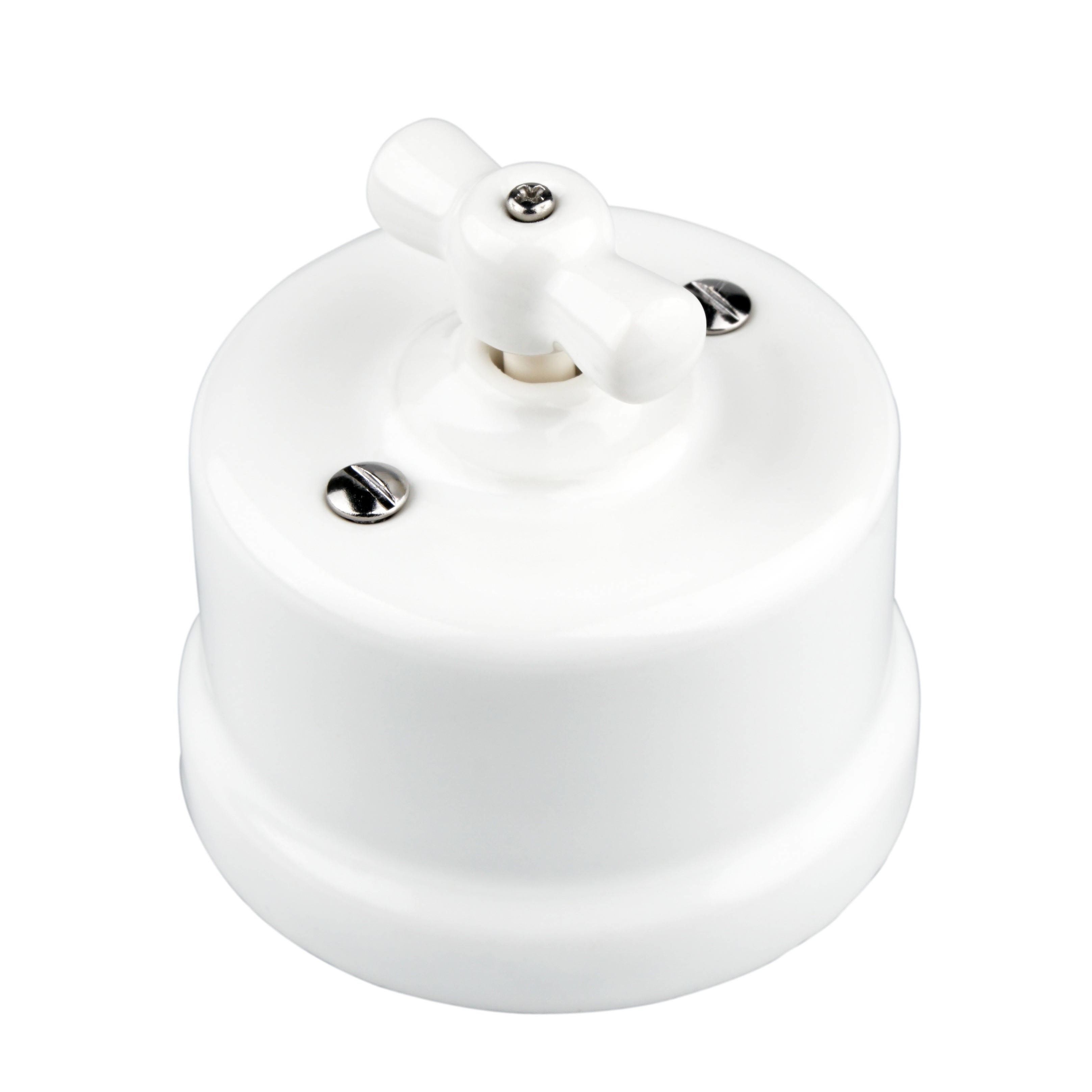 Керамический ретро выключатель Keruida в белом цвете — стильное сочетание классического дизайна и современной надежности. Лаконичная круглая форма и глянцевая поверхность делают его элегантным элементом интерьера в стилях лофт, винтаж, ретро, индустриальный или скандинавский.