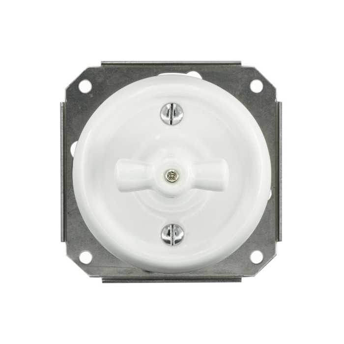 Ретро выключатель керамический Keruida белый поворотный 1-клавишный скрытого монтажа без рамки