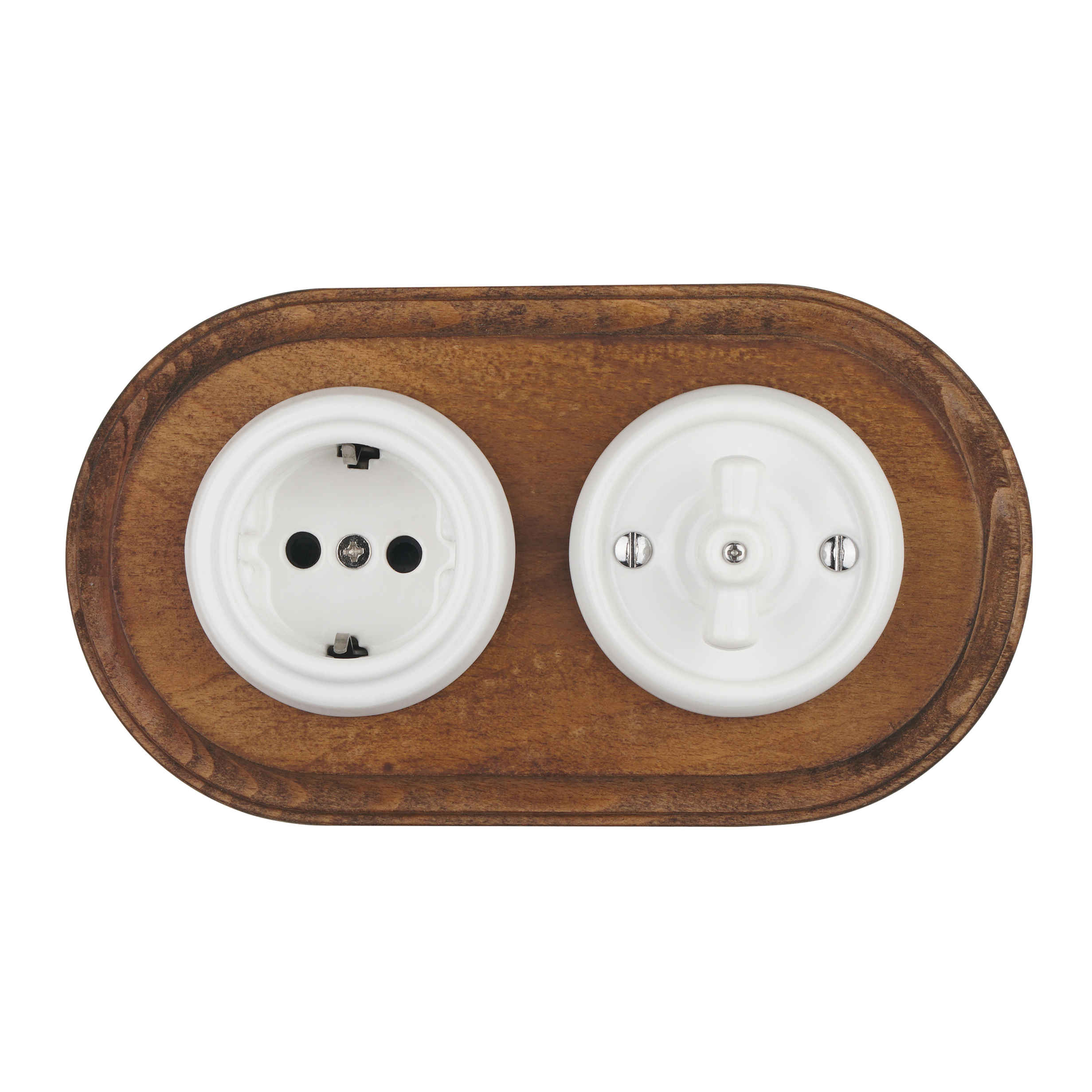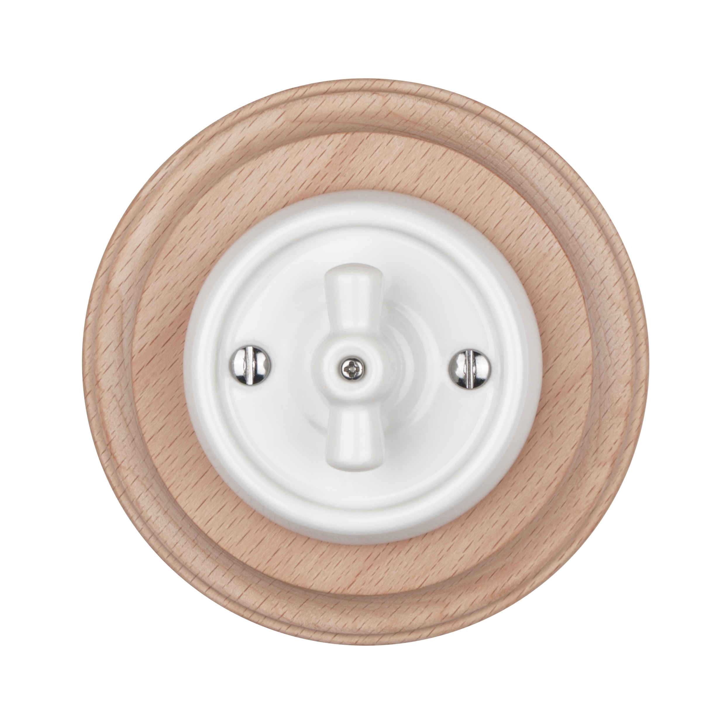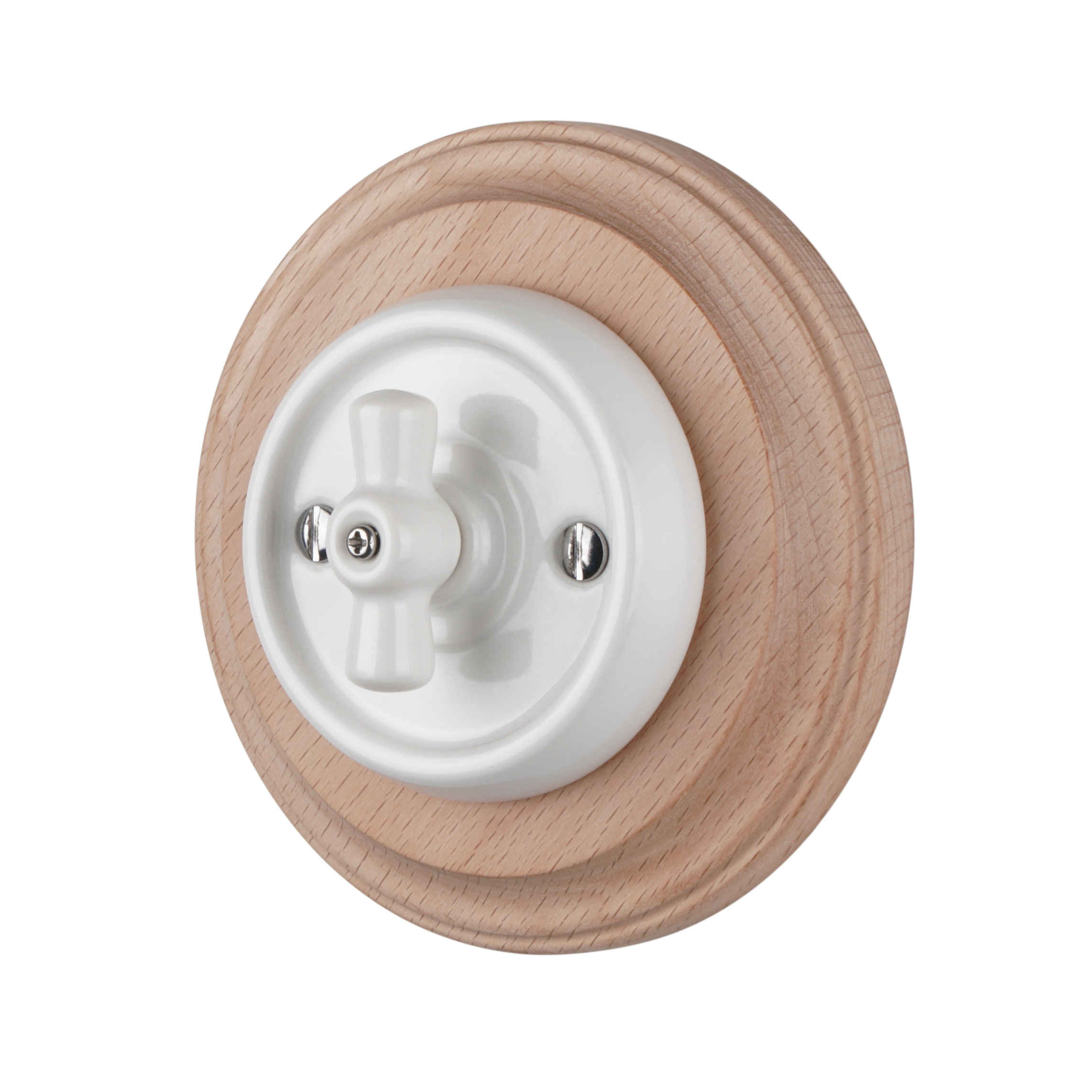Поворотный механизм является характерной деталью ретро-электрофурнитуры. Он обеспечивает чёткое переключение освещения и придаёт интерьеру особый винтажный характер. Одноклавишная конструкция предназначена для управления одной группой освещения, поэтому выключатель подходит для жилых помещений, коридоров, кухонь, кафе, ресторанов и дизайнерских пространств.