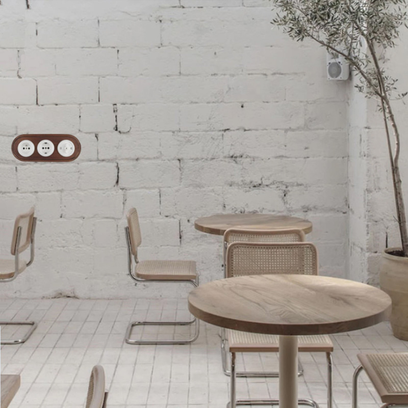 Модель предназначена для скрытого монтажа и поставляется без декоративной рамки. При необходимости выключатель можно дополнить керамической или деревянной рамкой, чтобы создать индивидуальное дизайнерское решение и гармонично сочетать его с ретро-проводкой.
