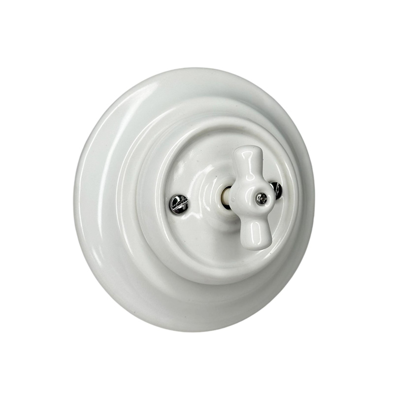 Керамический ретро выключатель Keruida в классическом белом цвете — это сочетание винтажной эстетики, натуральных материалов и надежной электрофурнитуры. Поворотный механизм и лаконичный дизайн делают его стильным элементом интерьера, который гармонично дополняет пространства в стилях лофт, ретро, индастриал, кантри или скандинавский минимализм.