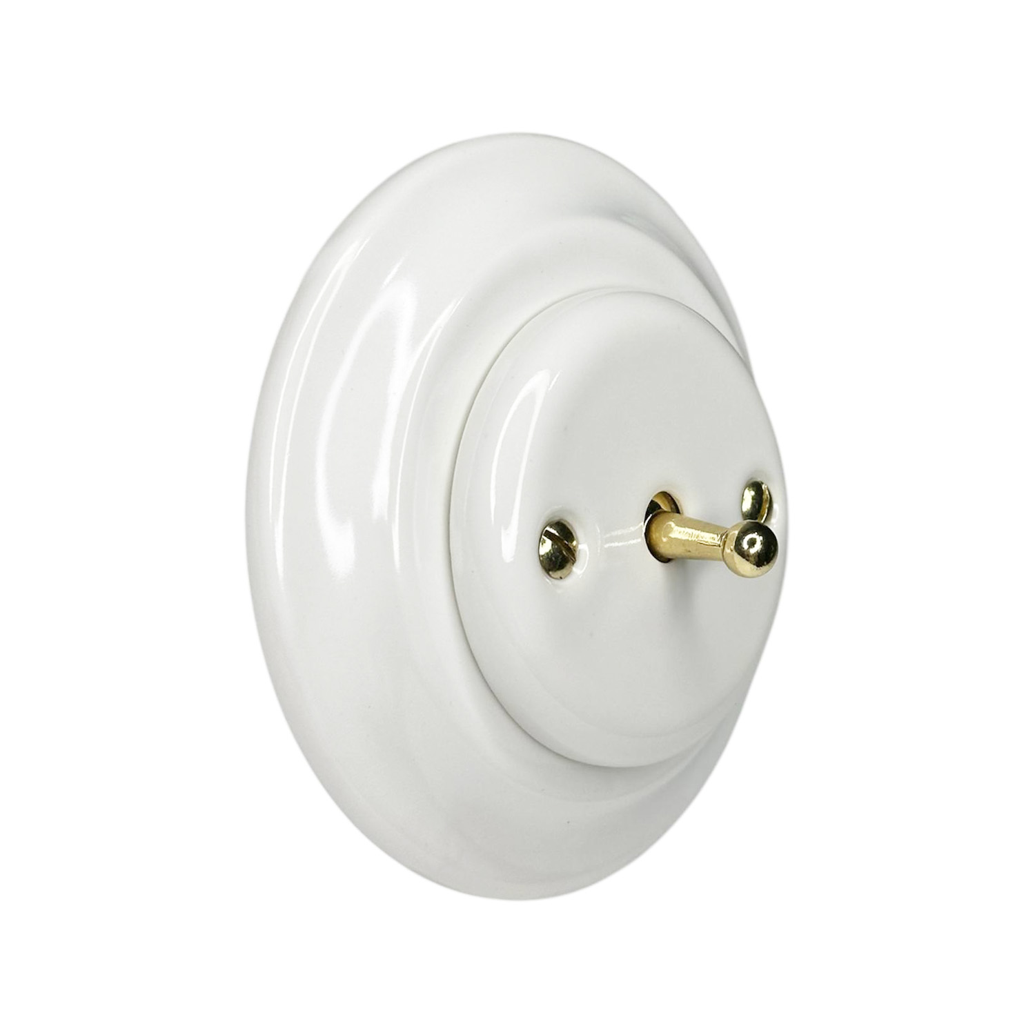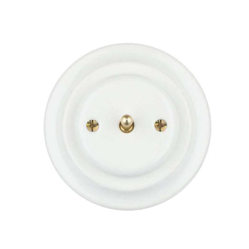 Ретро выключатель керамический Keruida тумблерный белый 1-клавишный скрытого монтажа без рамки