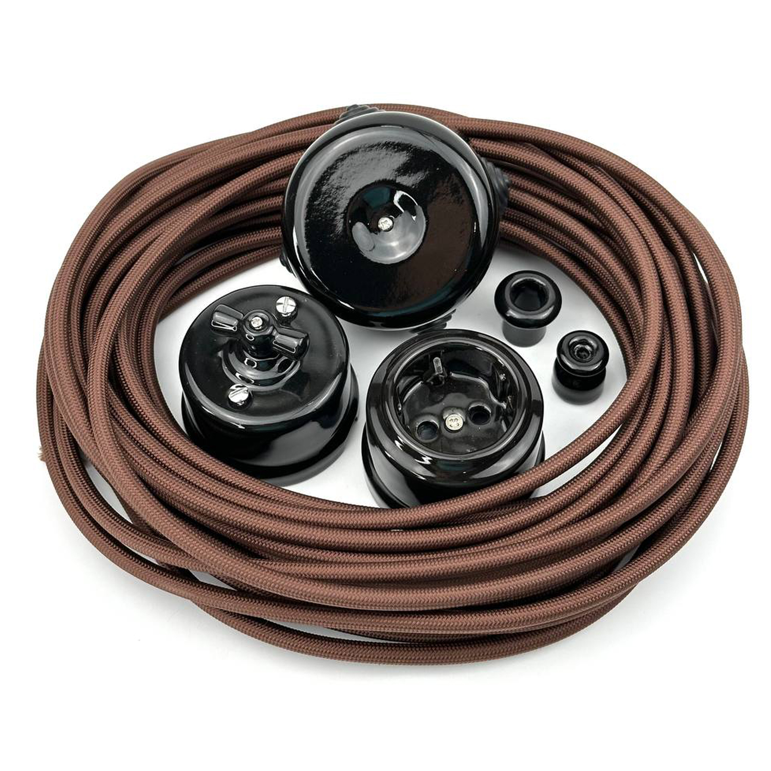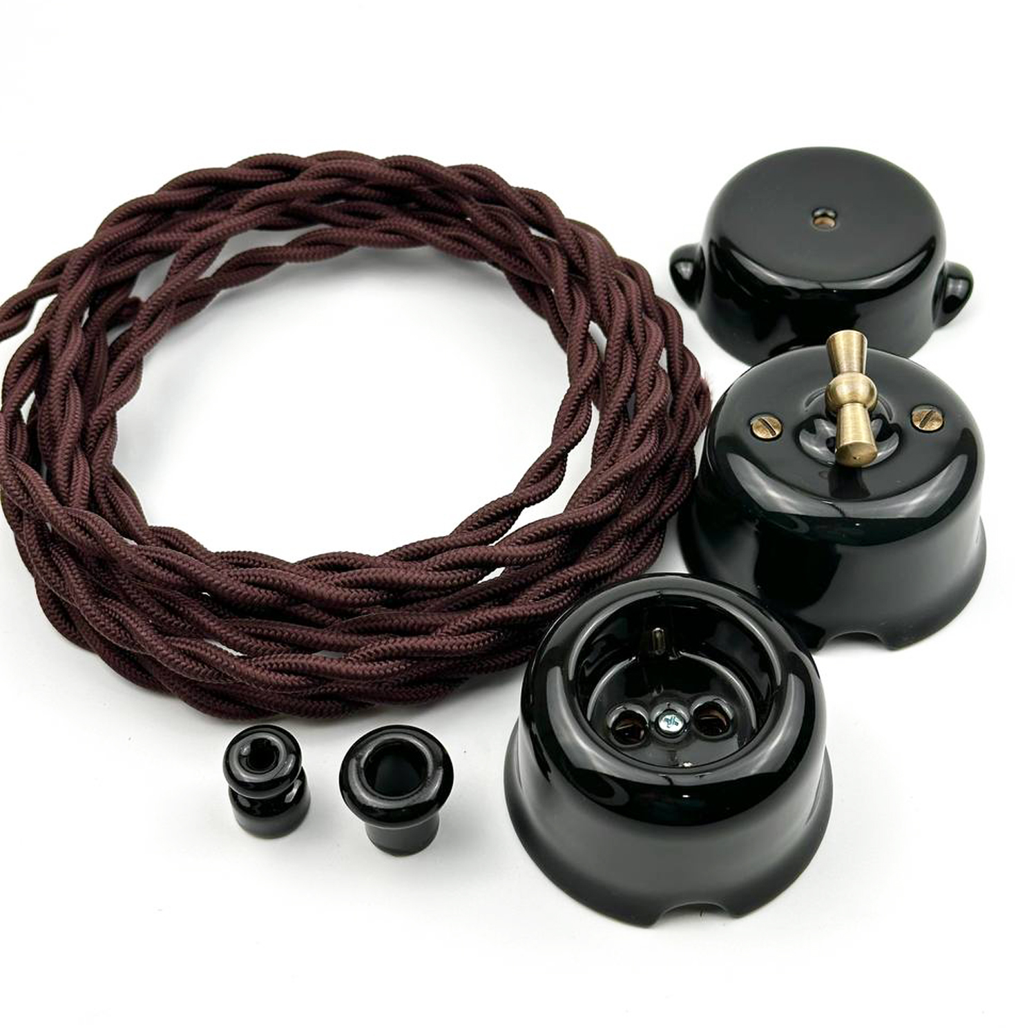 Керамический ретро выключатель SOFTY Black – это сочетание изящного дизайна, натуральных материалов и надежной электрофурнитуры. Модель выполнена в черном цвете и дополнена элегантной бронзовой ручкой переключателя, что придает изделию особый характер и делает его стильным элементом интерьера.