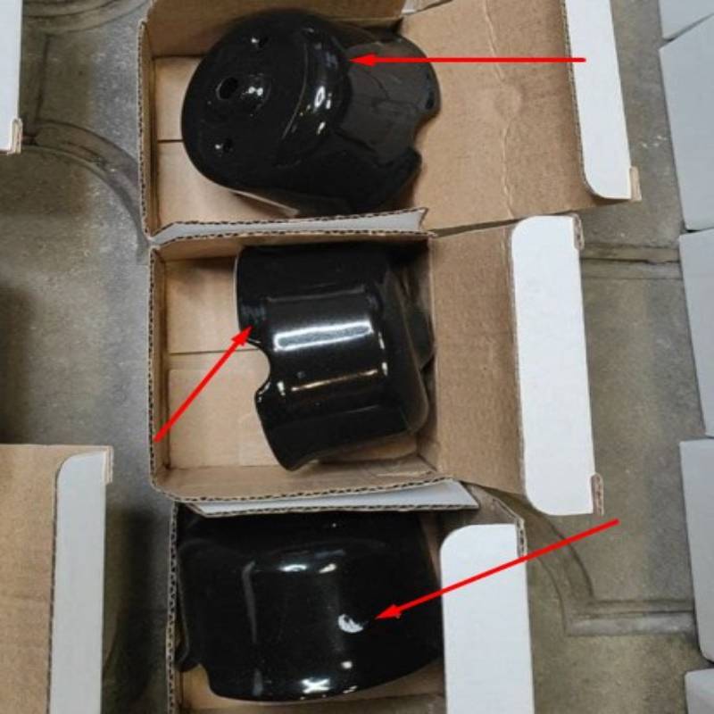 Данные выключатели с незначительными дефектами, которые показаны на фото (запекшийся воздух, неравномерное покрытие на изделии (разводы краски), следы белой краски).