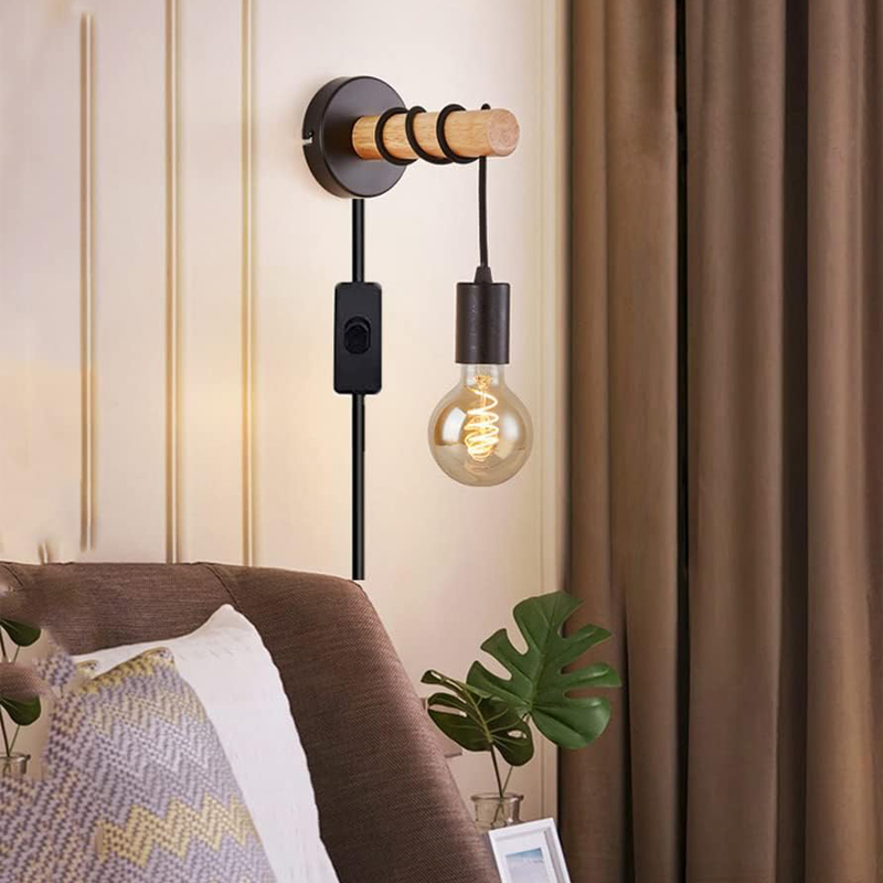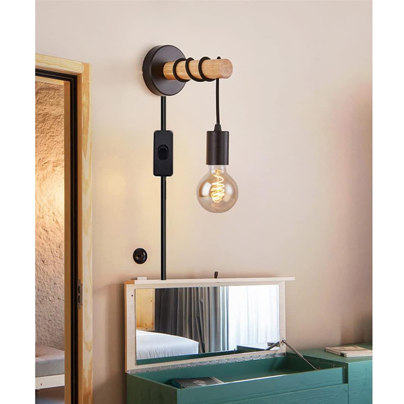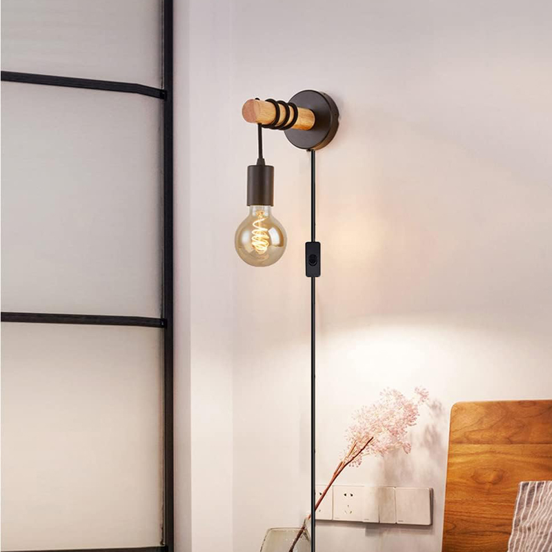 Винтажный настенный светильник с выключателем и штекером. Изготовлен из металла и дерева. Чудо подойдет для спальни, гостиной, коридора, кухни.