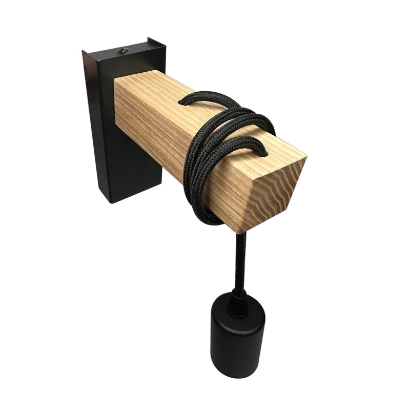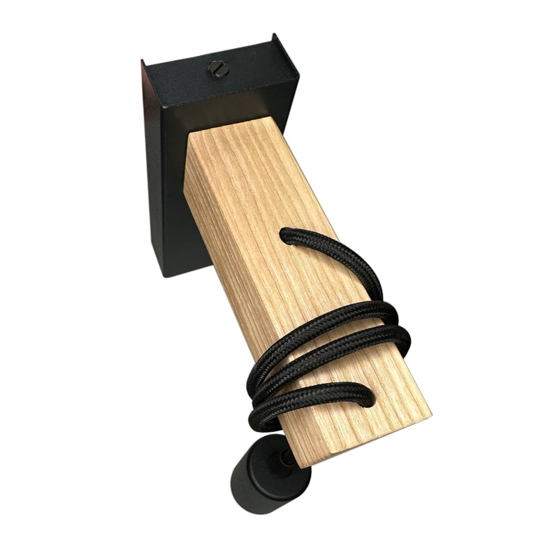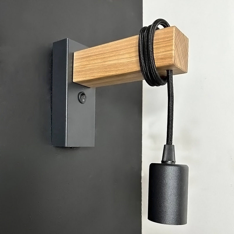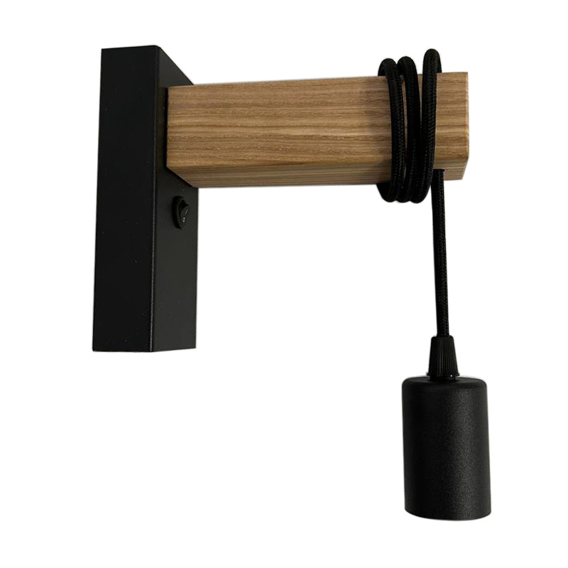 Бра в скандинавском стиле Wood с деревянной планкой и выключателем черное