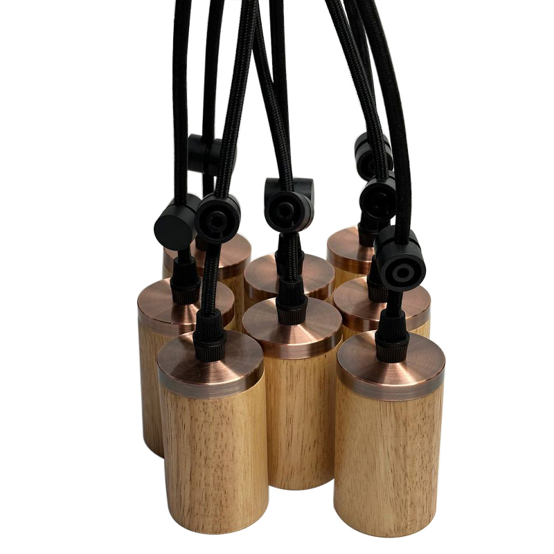 Люстра-паук в скандинавском стиле на 8 ламп с деревянным патроном с накладкой античная медь