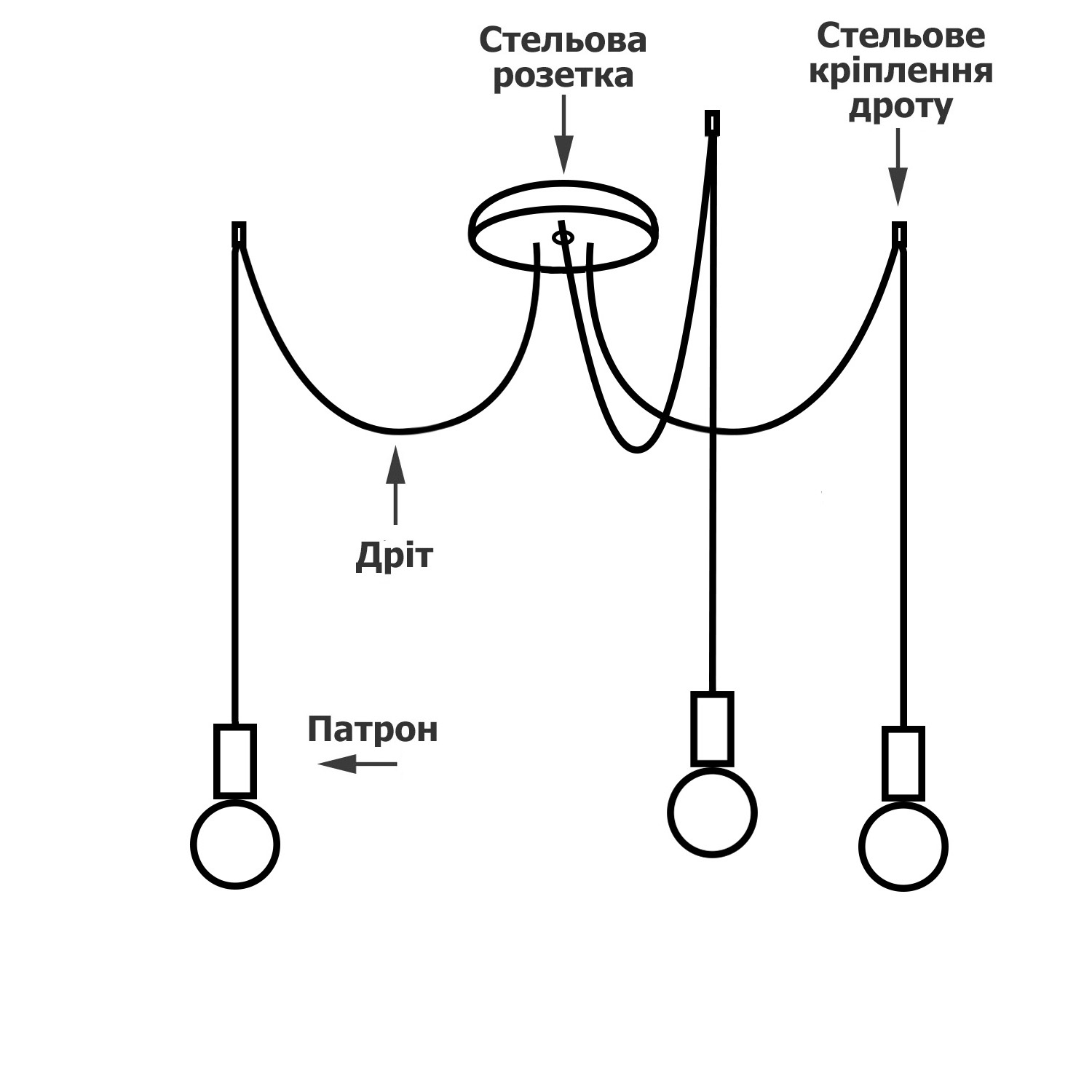 - провода в тканевой оплетке по 1,5м на каждую "лапу-подвес";