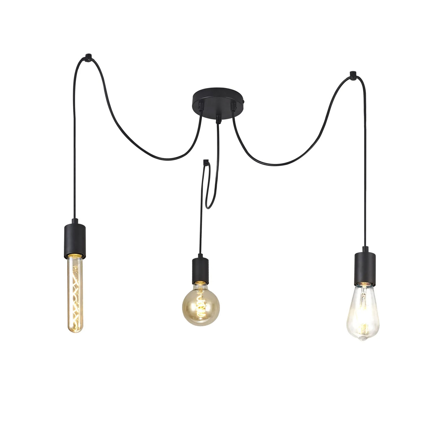 Люстра-паук на 3 лампы Эдисона с металлическими патронами черная