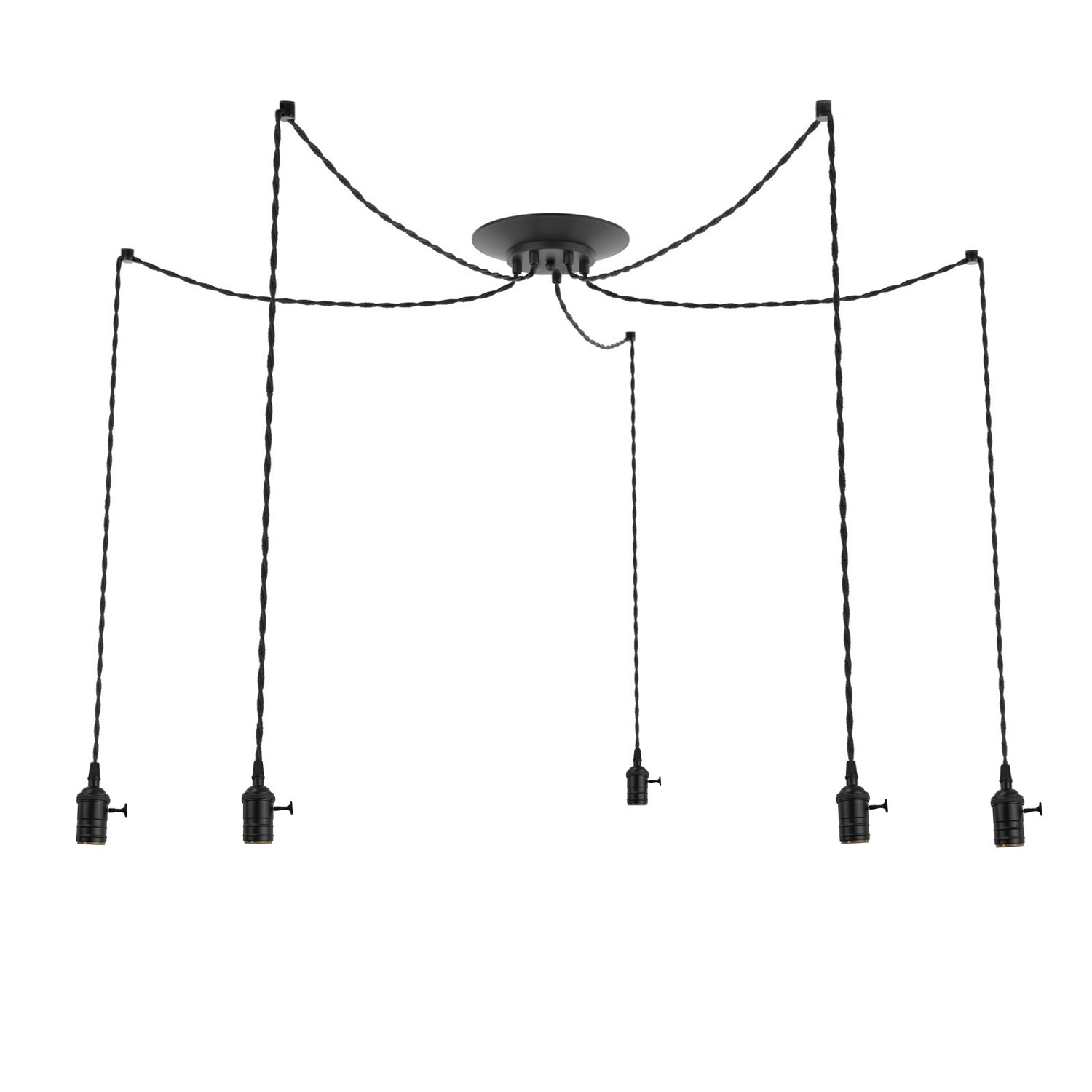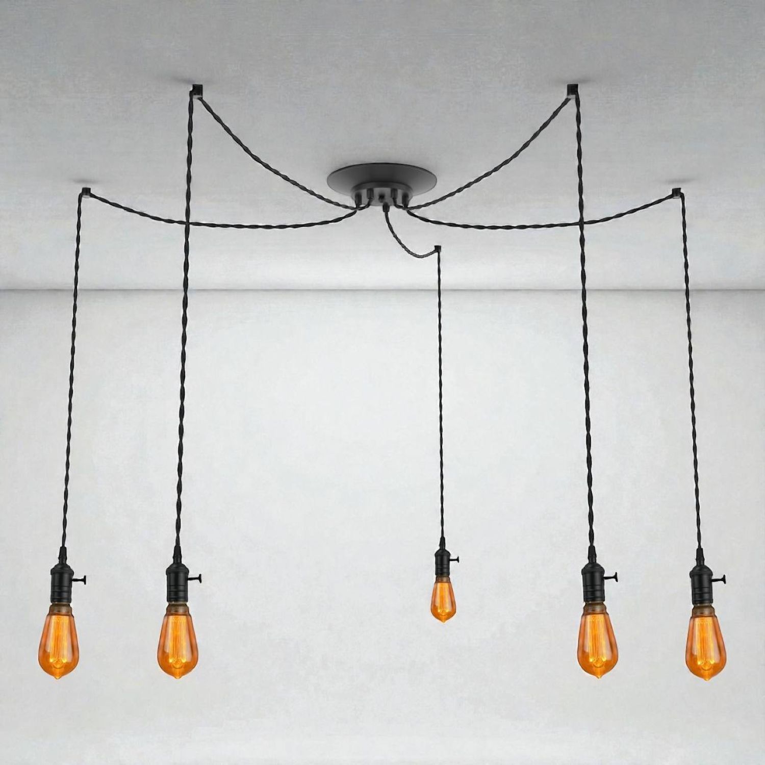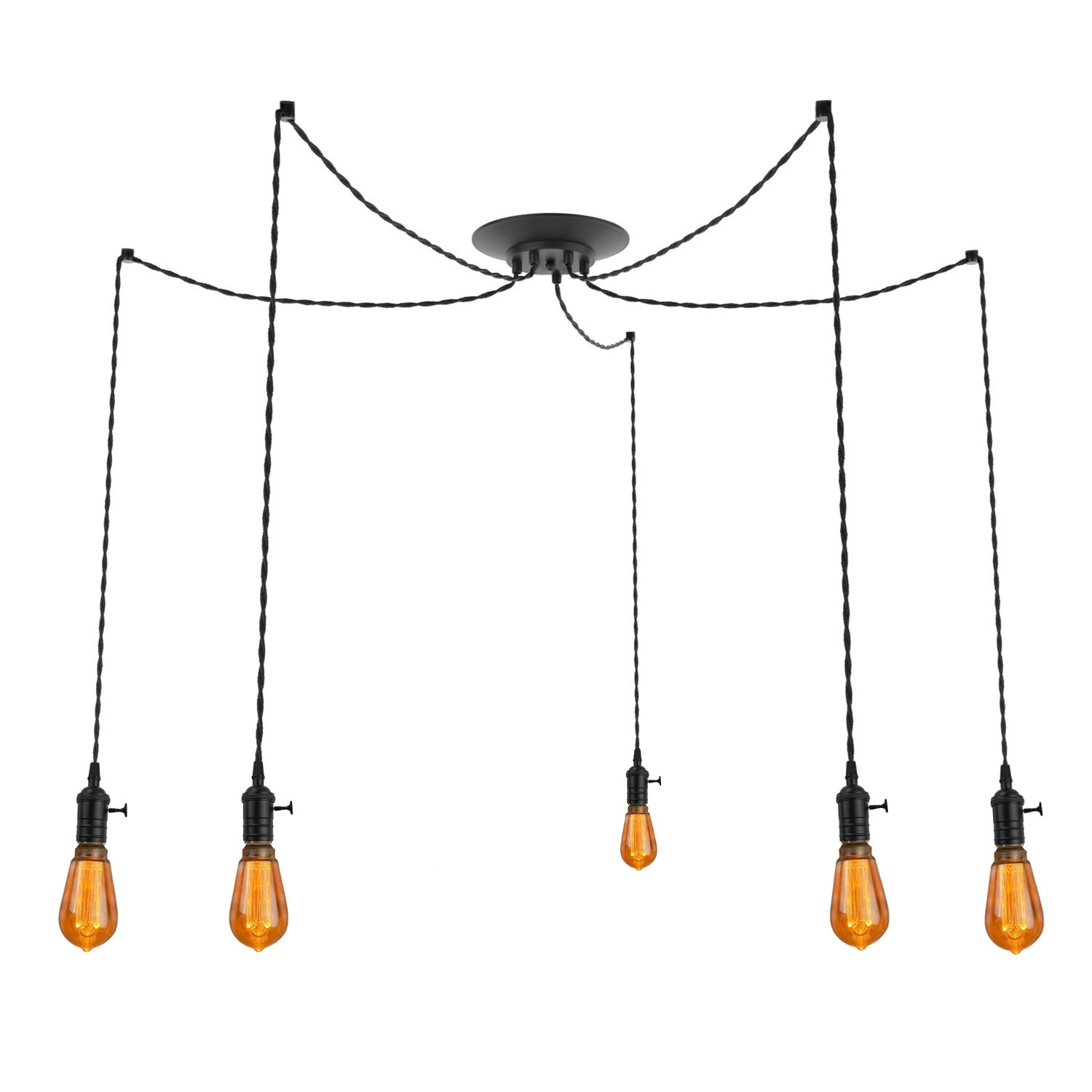 Люстра-паук на 5 ламп Эдисона с черными латунными патронами с выключателем