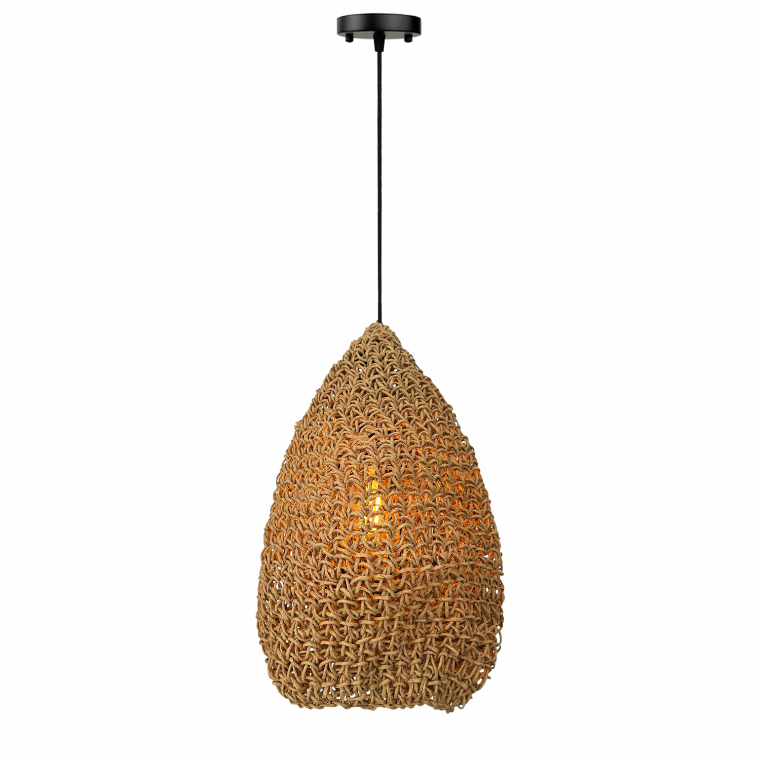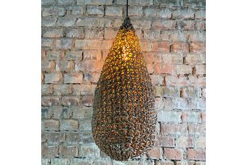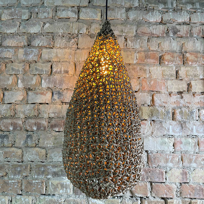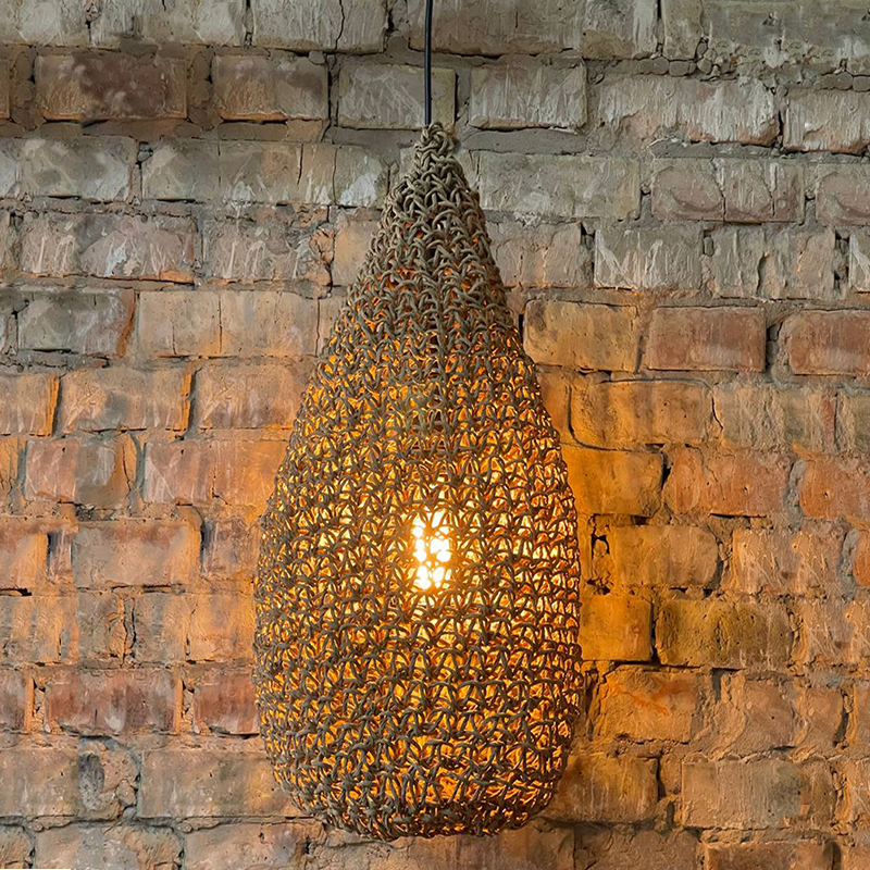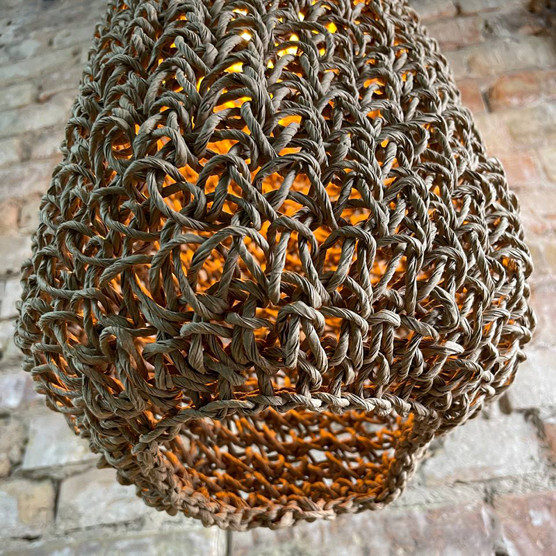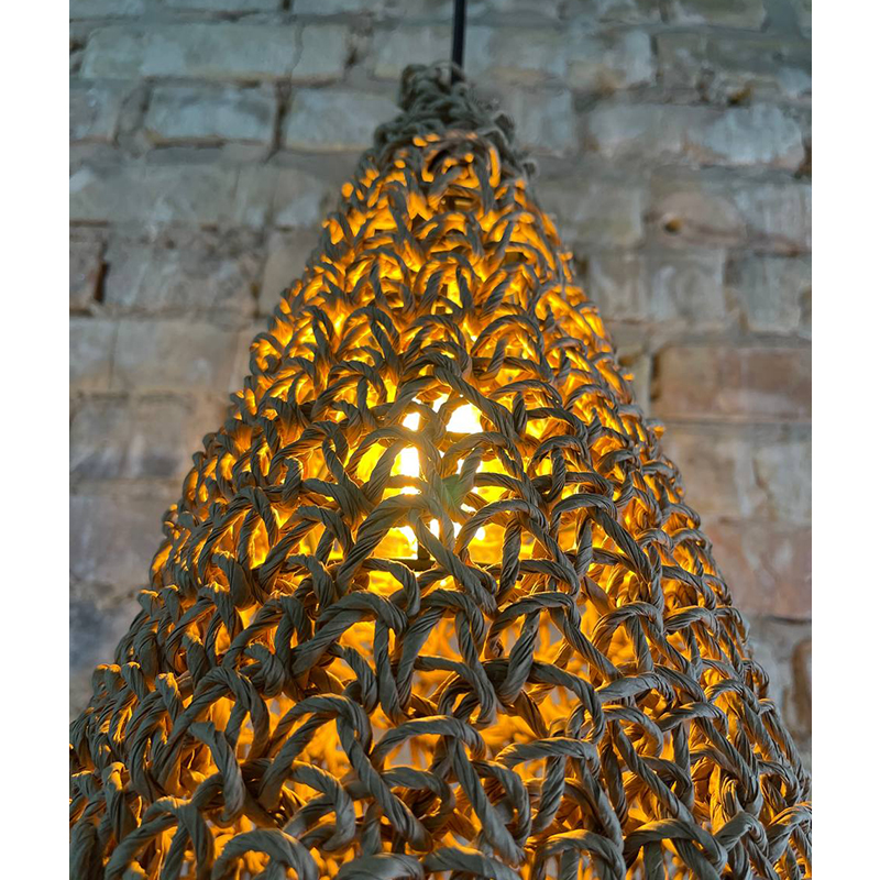 Оригинальная люстра, придаст вашему интерьеру неординарности и комфорта. Абажур для люстры сплетен вручную и одет на метлаллический фигурный каркас. Плетеный материал обеспечивает теплое, приятное освещение в комнате и создает декоративные световые узоры. Чем более плотная вязка у такого абажура, тем более приглушенным становится свет, делая тени глубже, а комнату уютнее.