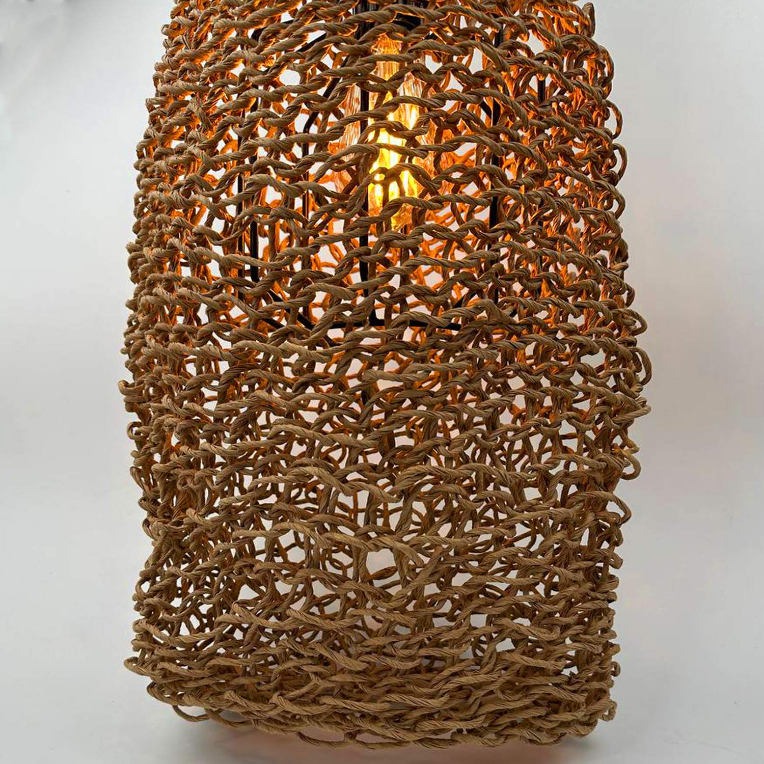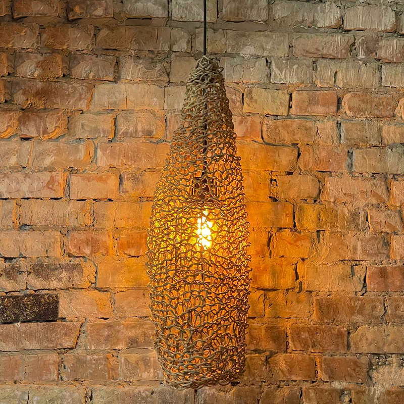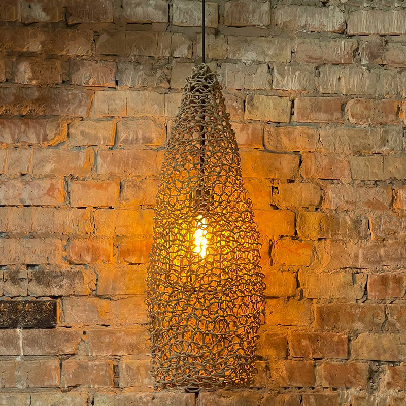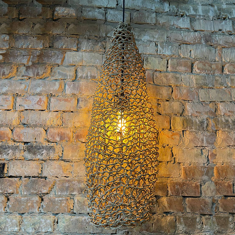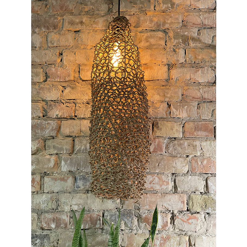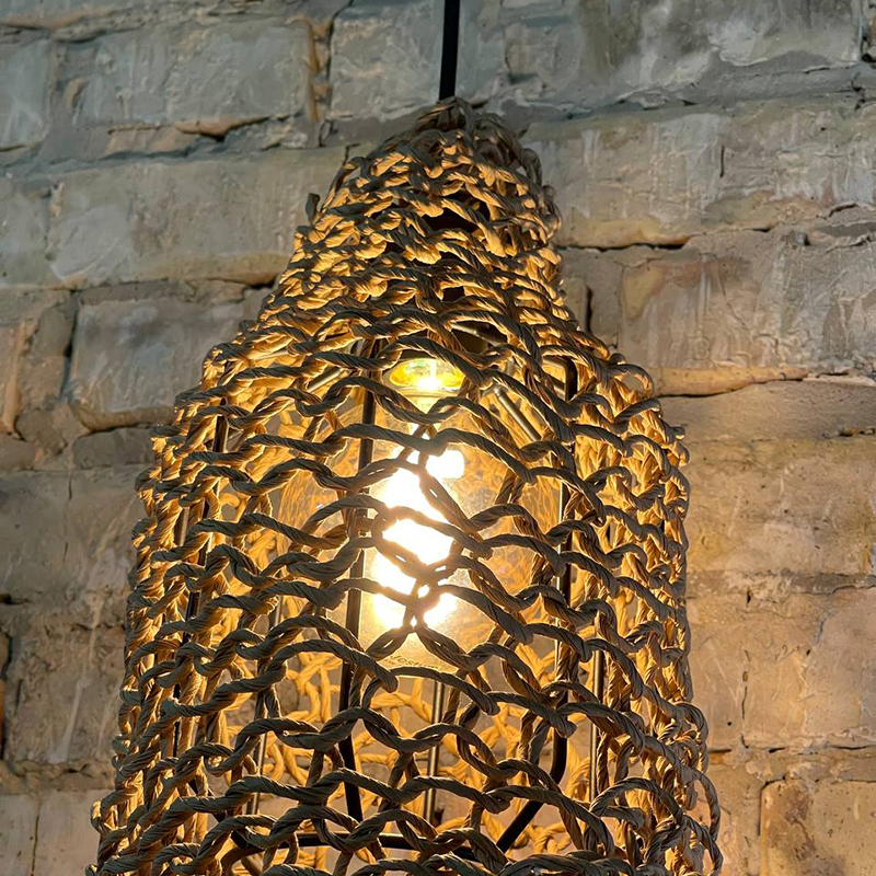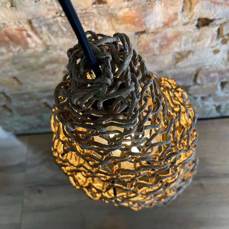 Оригинальная люстра, придаст вашему интерьеру неординарности и комфорта. Абажур для люстры сплетен вручную и одет на метлаллический фигурный каркас. Плетеный материал обеспечивает теплое, приятное освещение в комнате и создает декоративные световые узоры. Чем более плотная вязка у такого абажура, тем более приглушенным становится свет, делая тени глубже, а комнату уютнее.