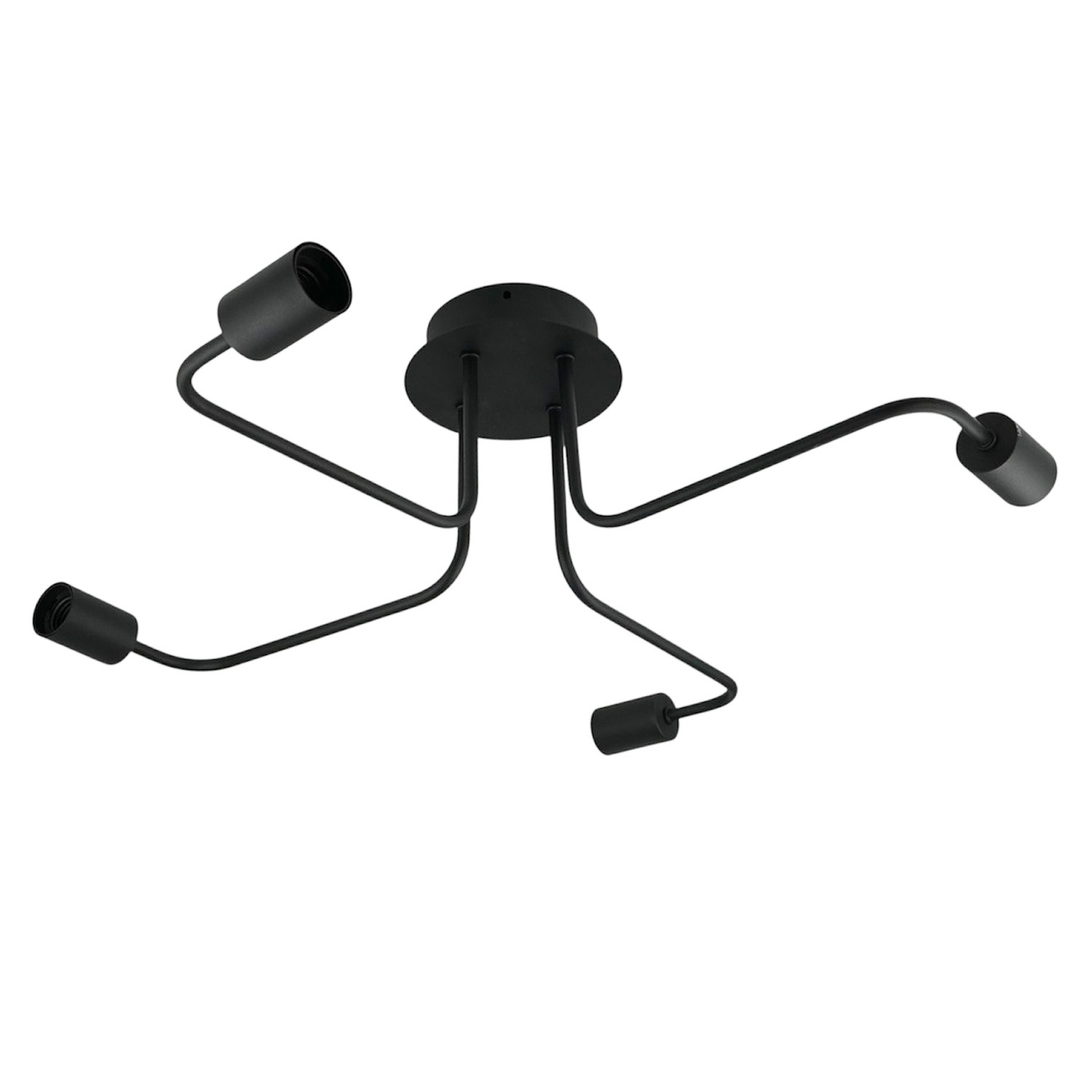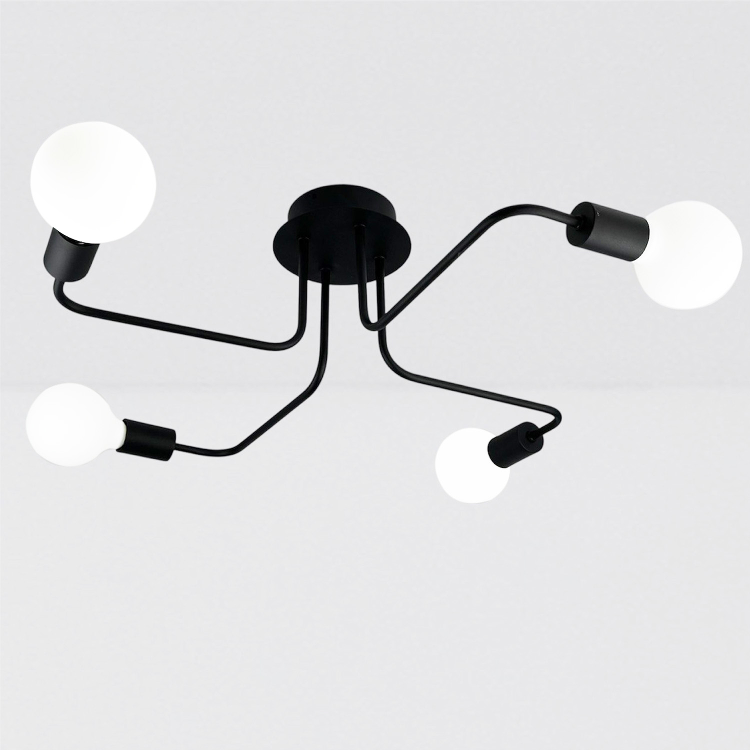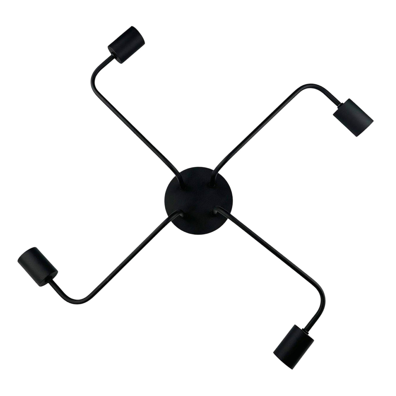 Современная и лаконичная люстра на 4 лампы – стильное решение для интерьера в стиле лофт, индастриал или минимализм. Черное металлическое основание с 4 плавно изогнутыми «лапами» заканчивается открытыми патронами под лампы с цоколем E27. Благодаря открытому дизайну свет распределяется максимально эффективно, создавая яркую, функциональную атмосферу.