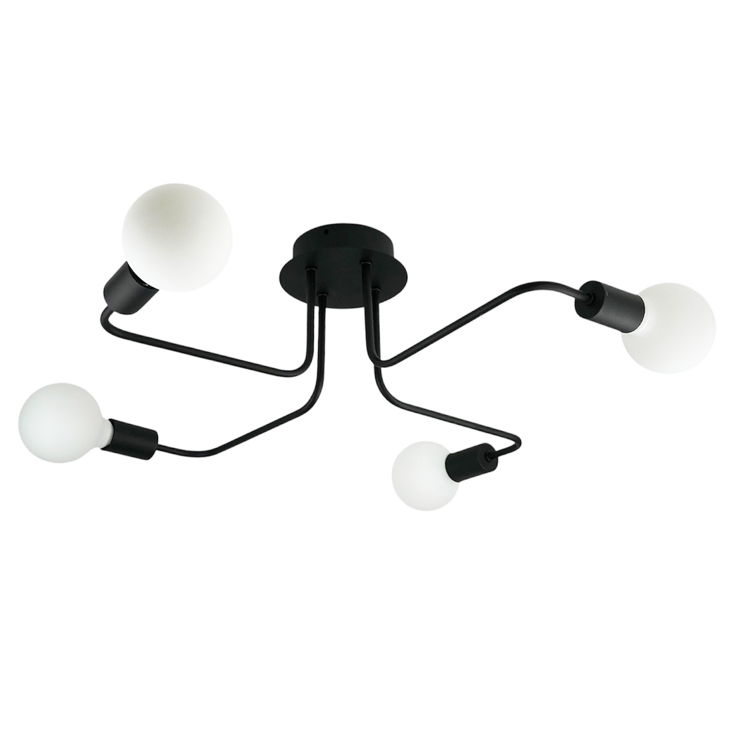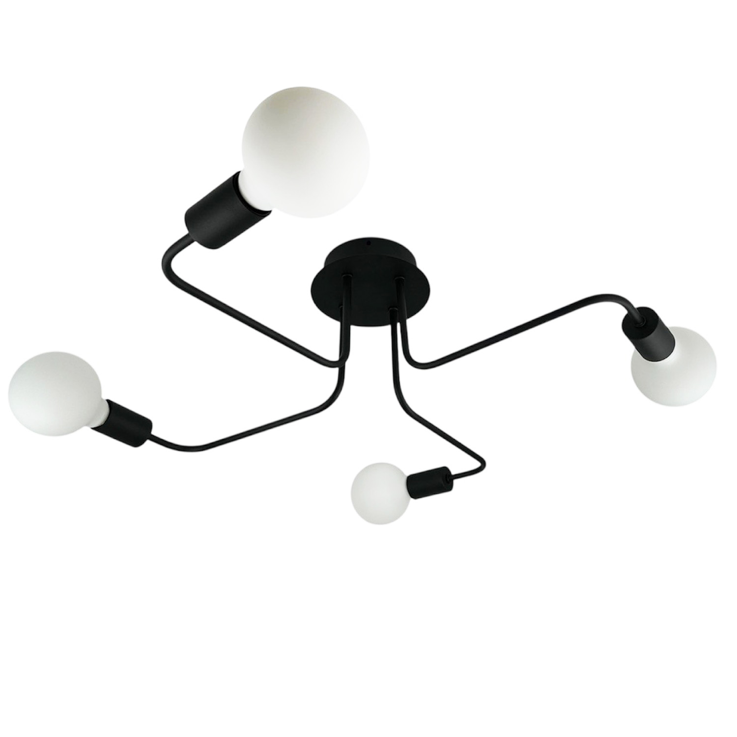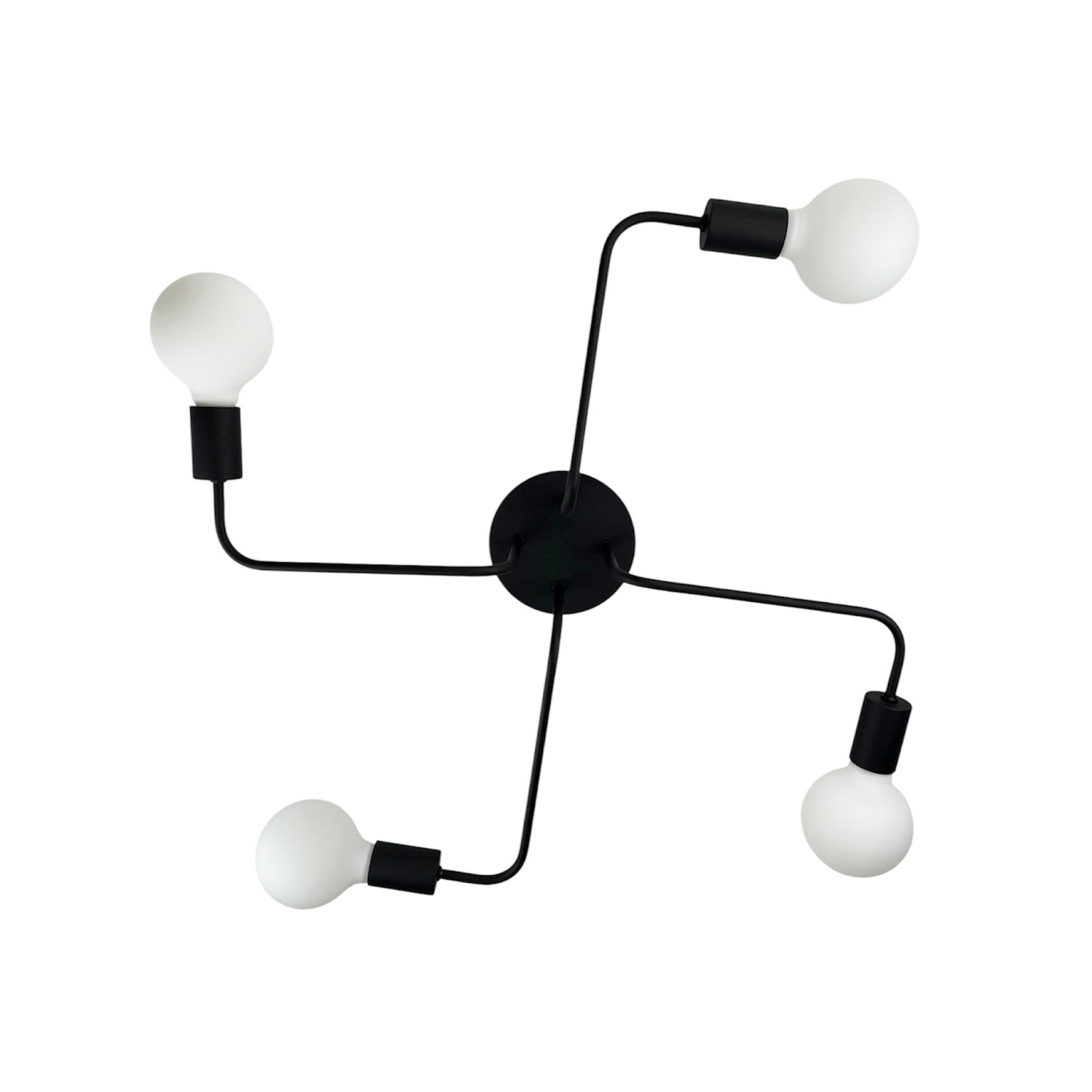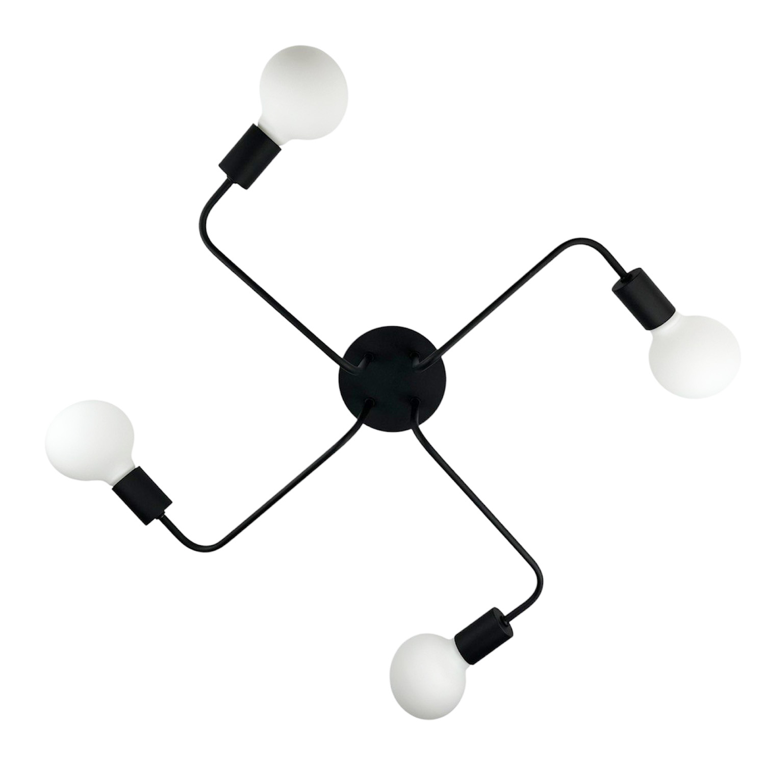 Современная и лаконичная люстра на 4 лампы – стильное решение для интерьера в стиле лофт, индастриал или минимализм. Черное металлическое основание с 4 плавно изогнутыми «лапами» заканчивается открытыми патронами под лампы с цоколем E27. Благодаря открытому дизайну свет распределяется максимально эффективно, создавая яркую, функциональную атмосферу.