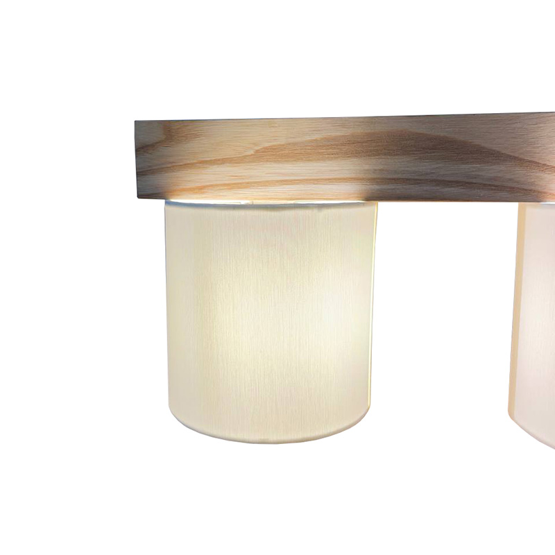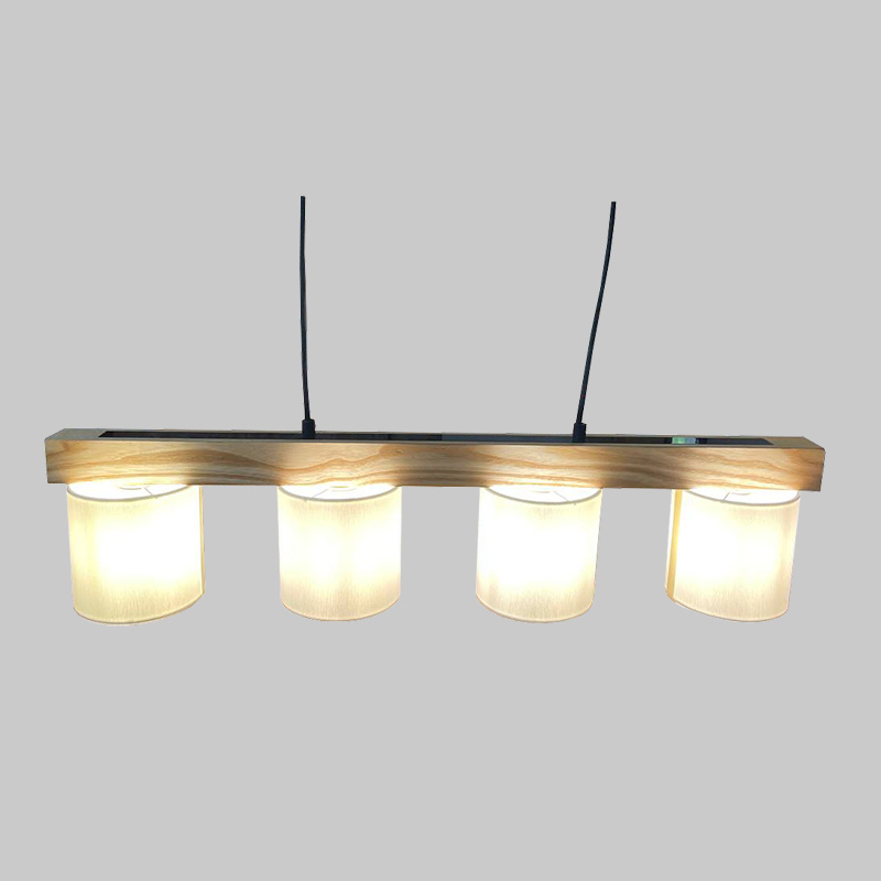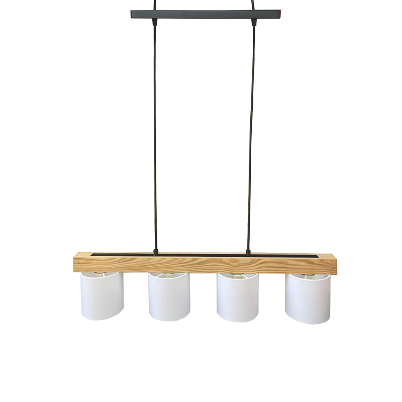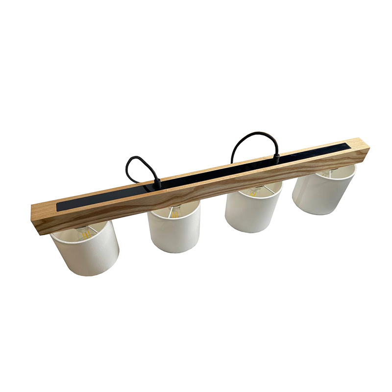 Люстра изготовлена из высококачественных материалов. Деревянная планка из ясеня, покрытого лаком со вставкой из черного цвета полистерола. Плафоны обтянуты хлопковой тканью и излучают мягкий свет, приятный для глаз.