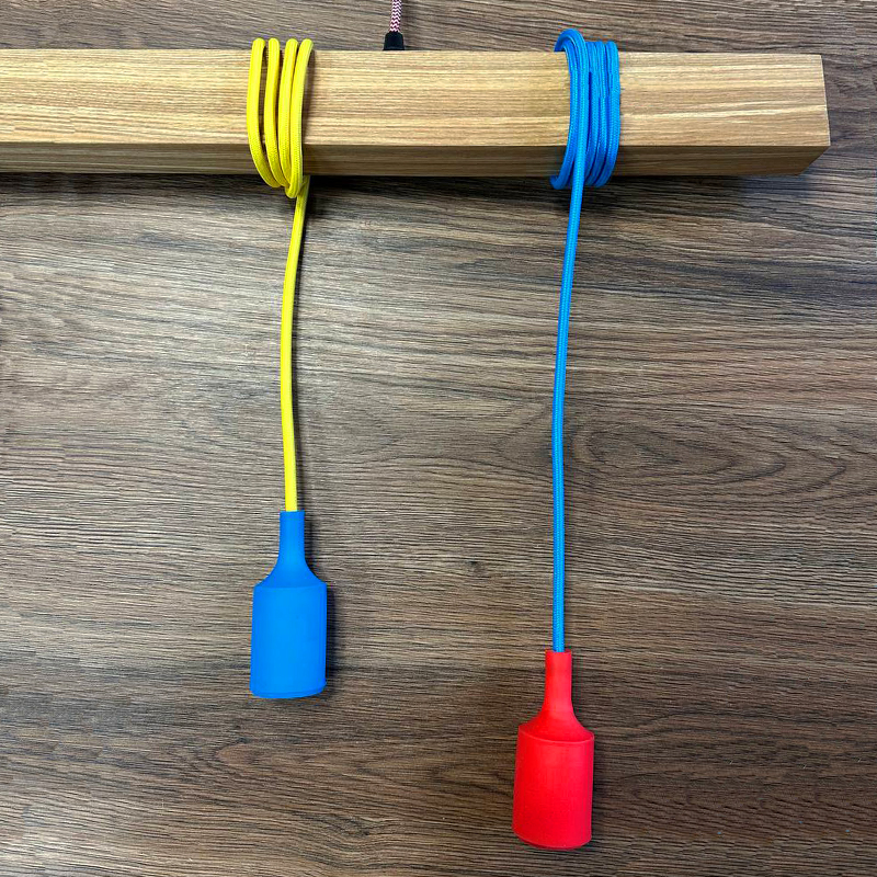 Кольорові дроти красиво обвивають дерев’яну основу, створюючи ефект легкості й руху. А силіконові патрони — це безпечне, ударостійке та приємне на дотик рішення, ідеальне для дитячих приміщень.