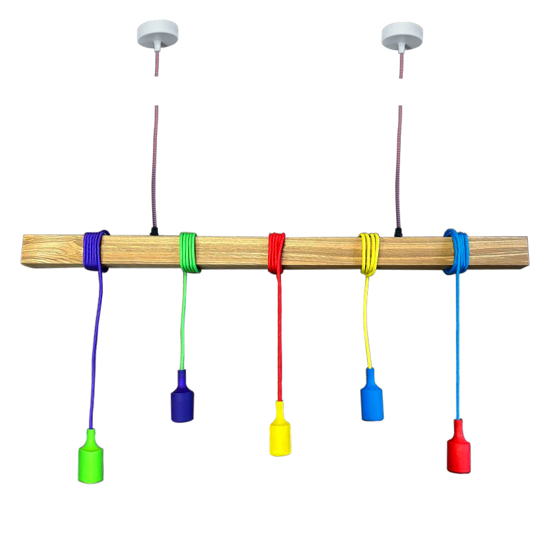 Люстра у скандинавському стилі SkandyWood Kids на 5 ламп, з різнокольоровими силіконовими патронами та проводами