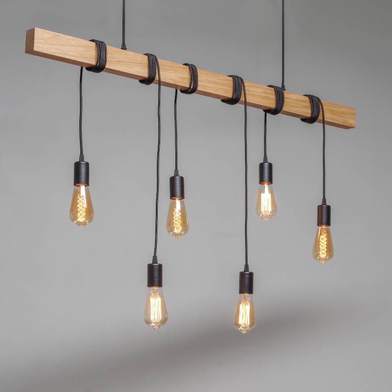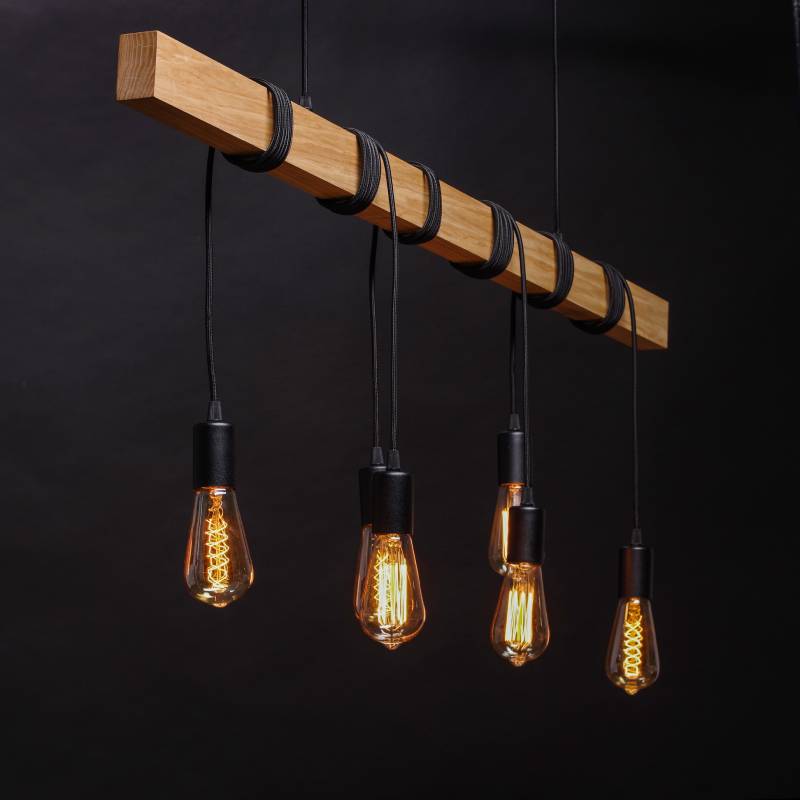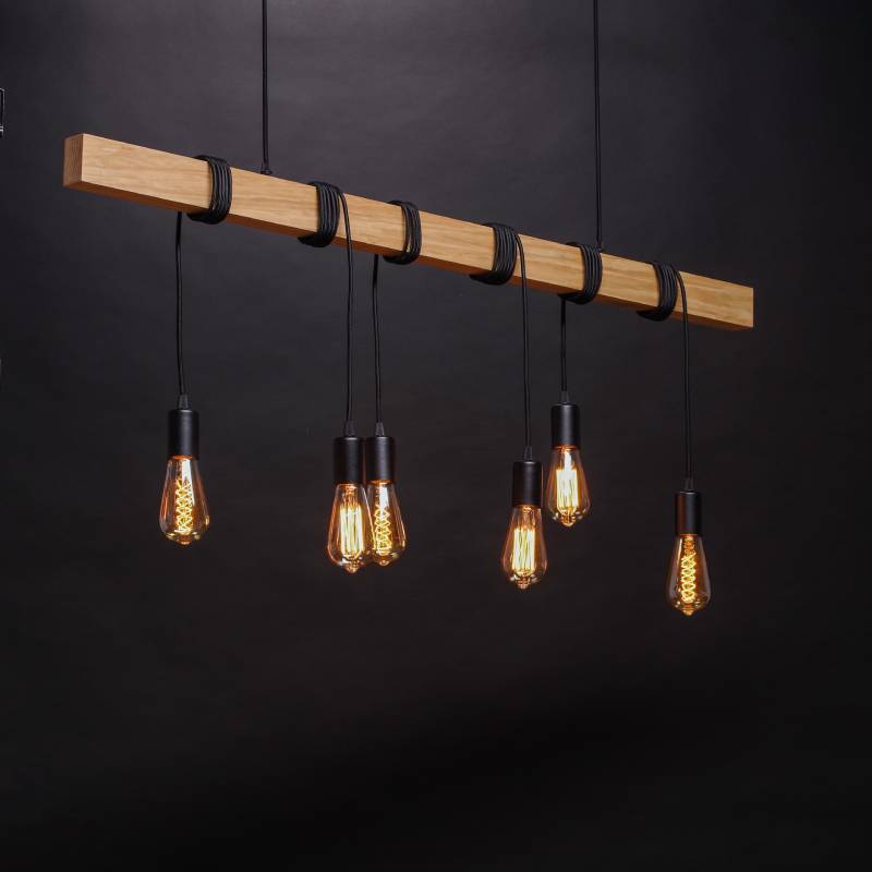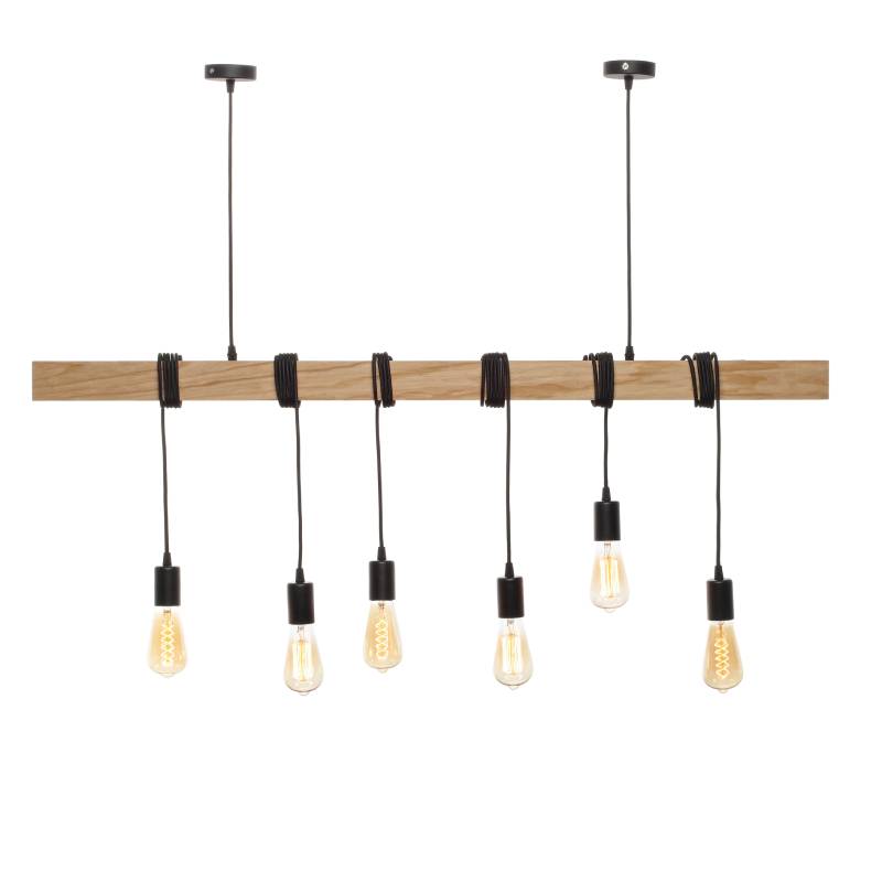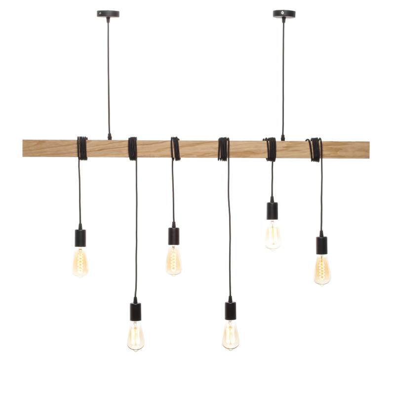 Люстра в скандинавском стиле Wood-1.2-6 с деревянным брусом на 6 ламп Черная