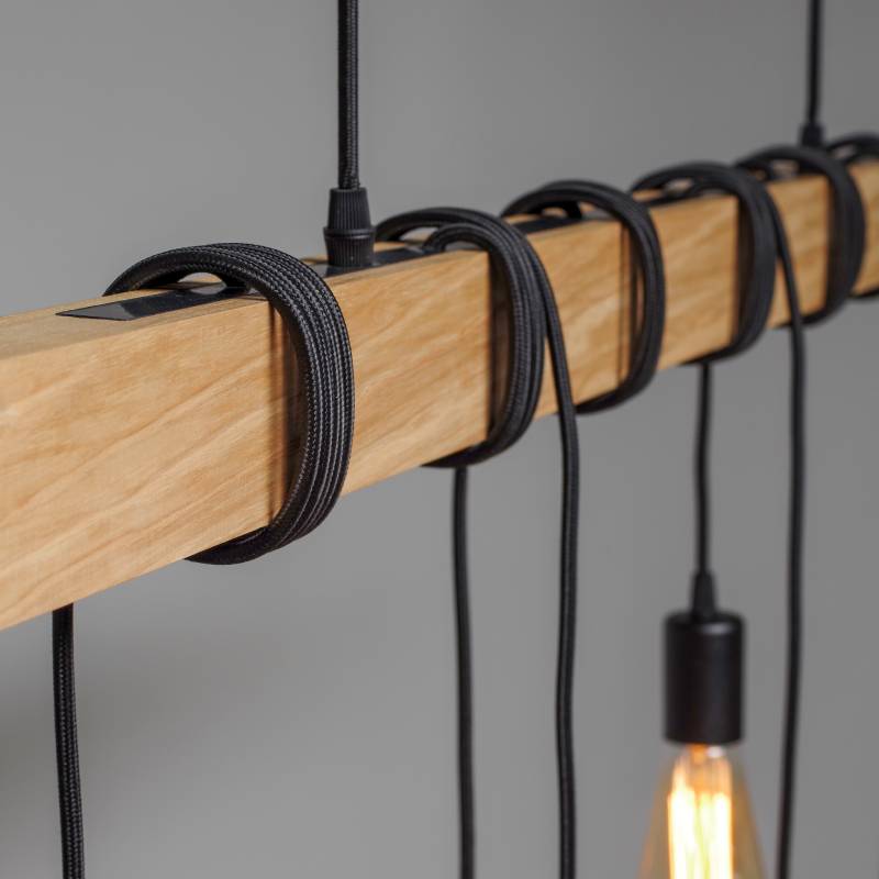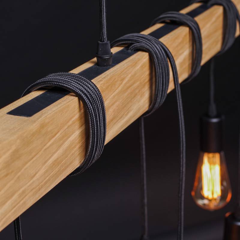Эта люстра стала настоящим фаворитом среди наших клиентов – и не зря. Сочетание натурального дерева и металла в черном цвете – это современная классика, подходящая к любому интерьеру в стиле сканди, лофт, минимализм или эклектика.Провода в тканевой оплетке обвивают деревянную планку — это не только конструктивное решение, но и важный декоративный акцент, придающий светильнику динамики и характер.