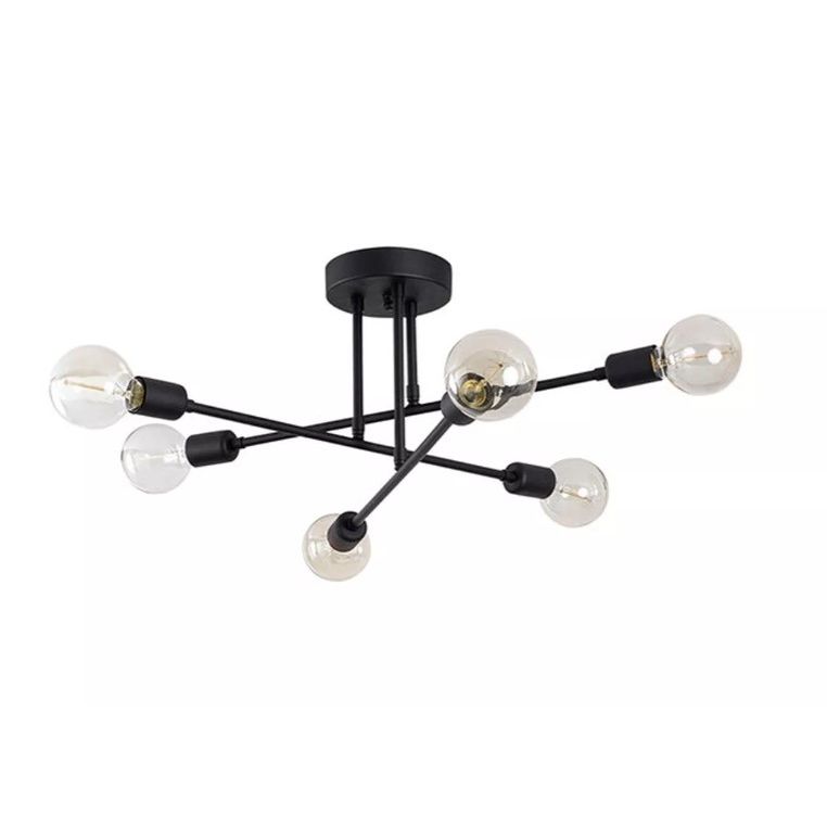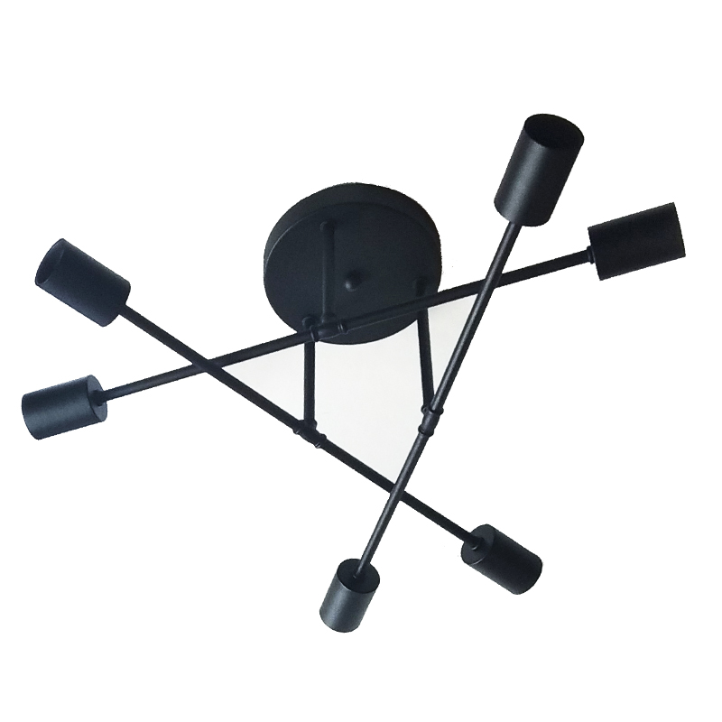 Люстра в современном стиле лофт потолочная Trit-BB6 на 6 ламп E27 черная с черными патронами