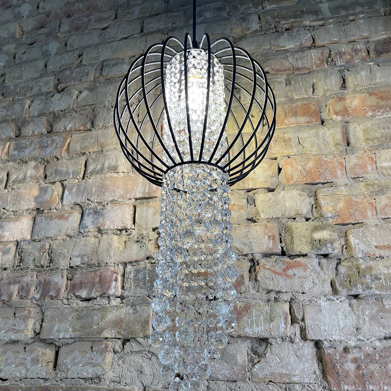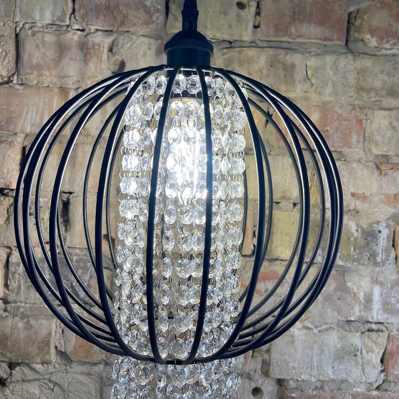 Подвесной светильник Сфера с хрустальными бусинами – это оригинальное сочетание стилей лофт и модерн. Он гармонично впишется в ваш интерьер и придаст яркости и блеска в зоне его расположения. Свет мягко распределяется по комнате, создавая приятную уютную атмосферу.
