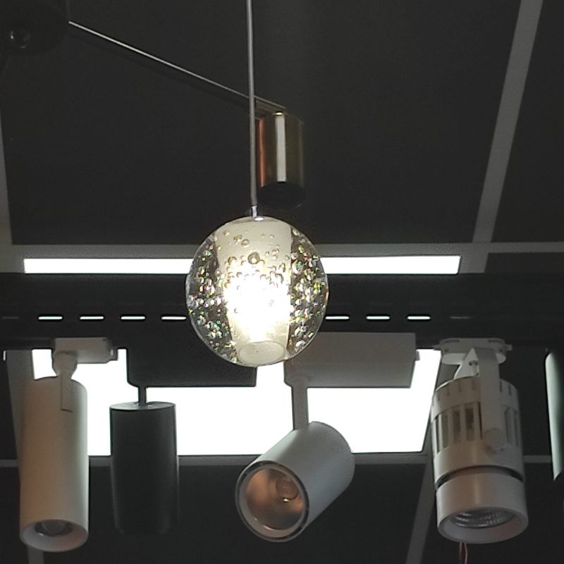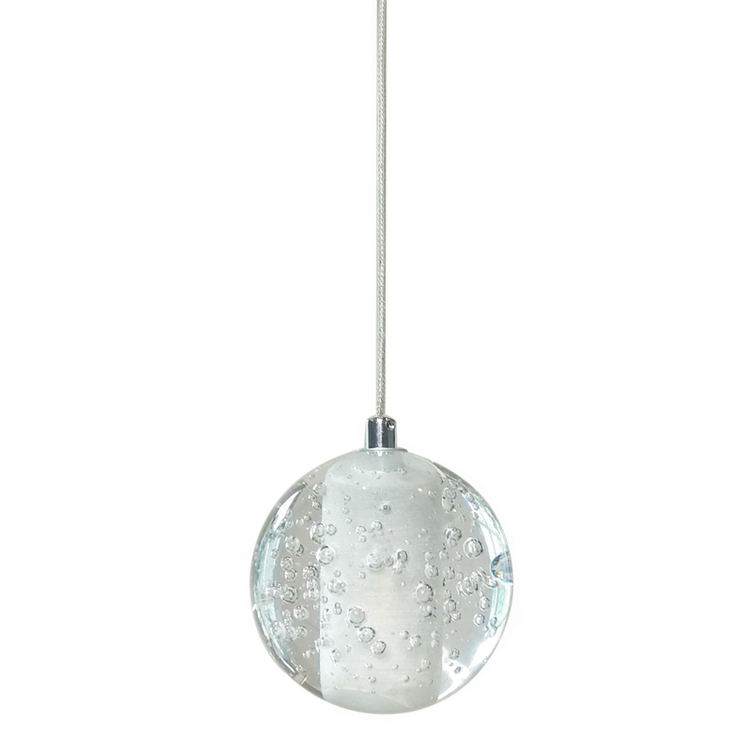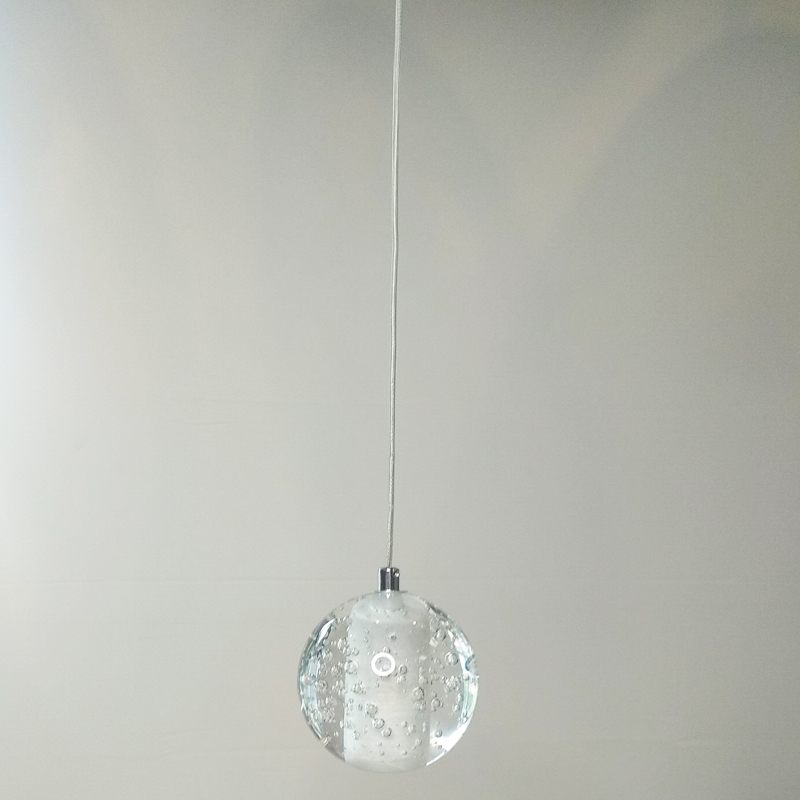 Подвесной светильник Mini Bubble 100 - это необычный источник света с патроном из стеклянного шара, который одновременно является плафотом для капсульной светодиодной лампы. Толстое стекло с пузырьками воздуха придаёт светильнику лёгкость и воздушность, а благодаря многократному преломлению света создаёт довольно необычный ареол.