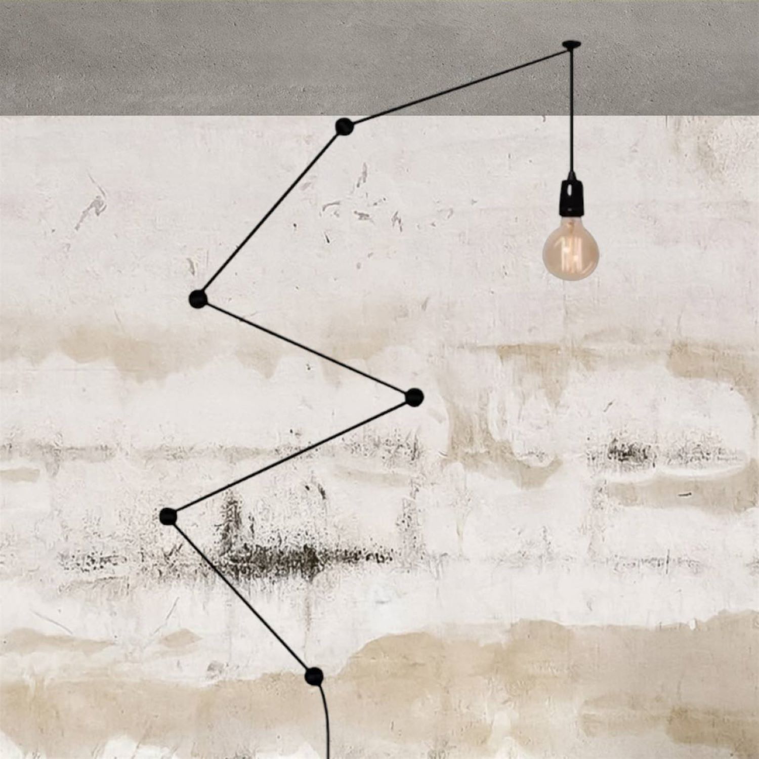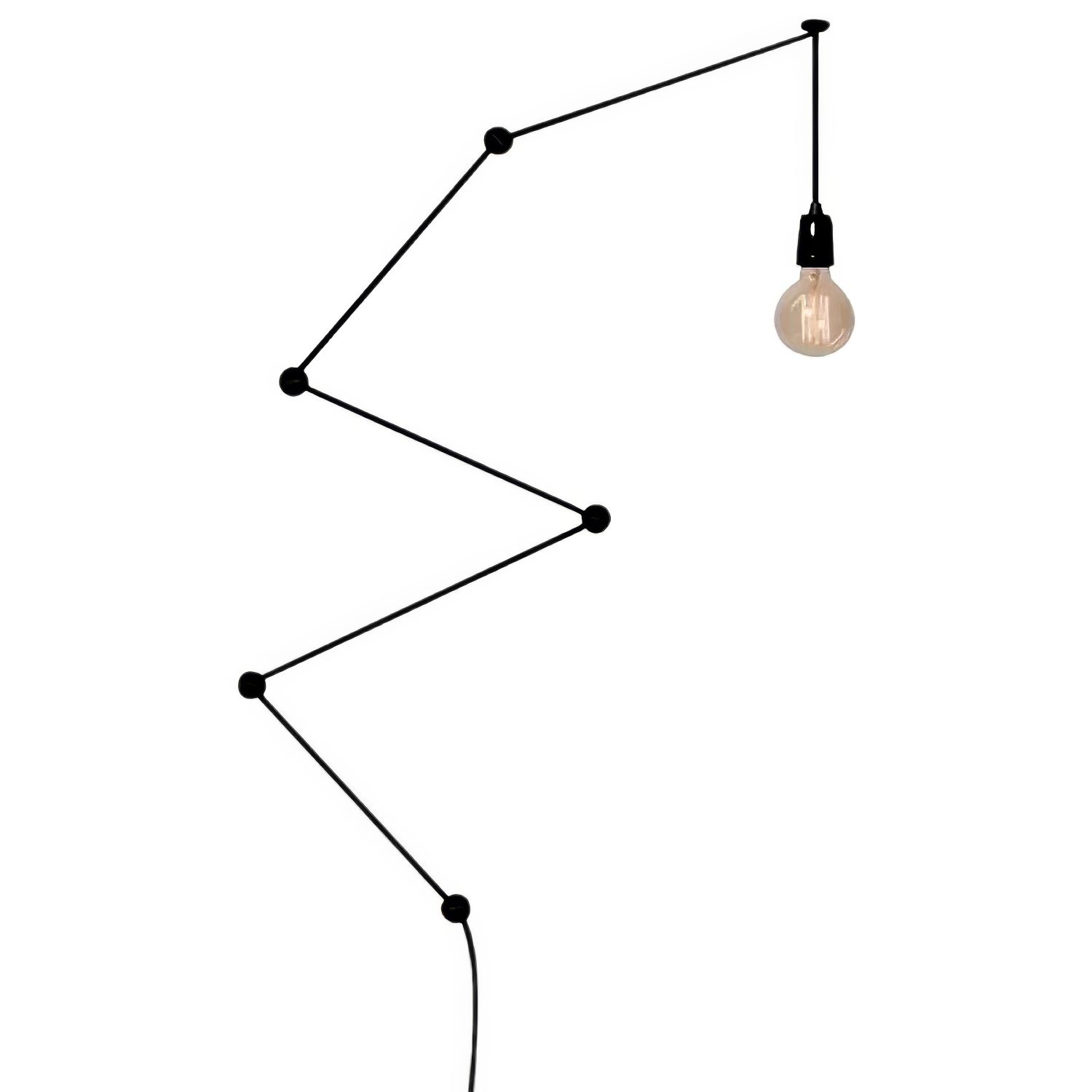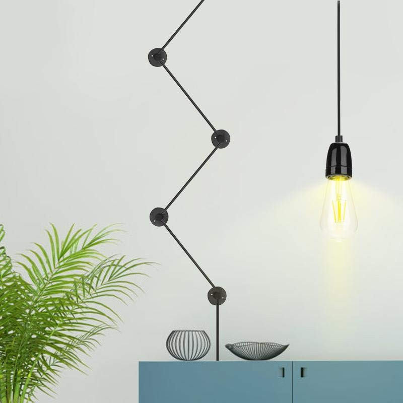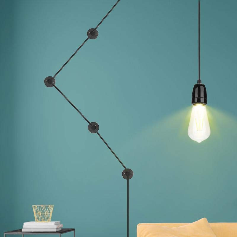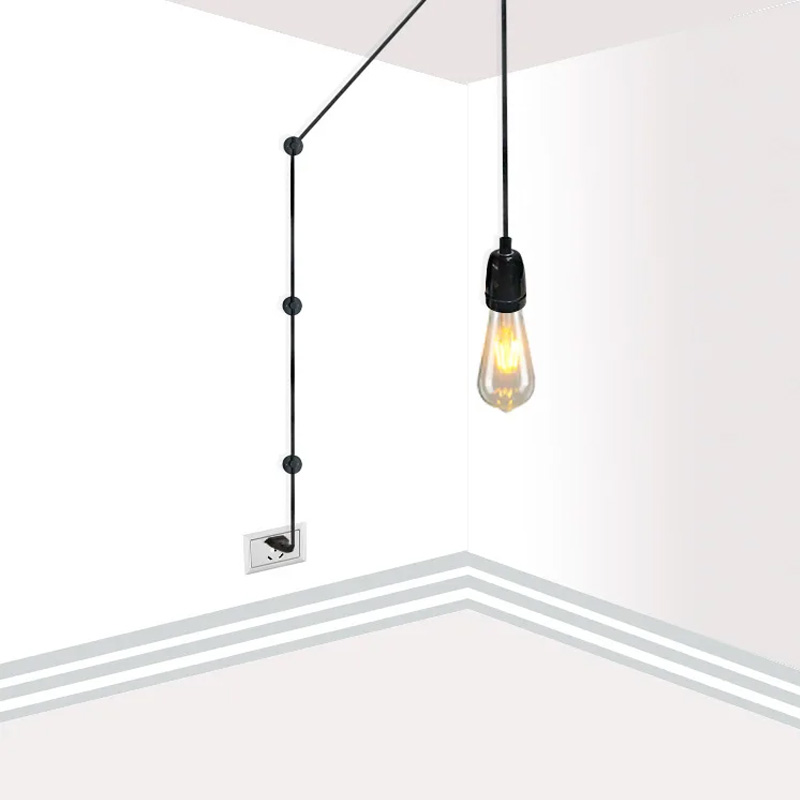 Этот светильник состоит из керамического патрона с кабелем в текстильной оплетке, заканчивающийся вилкой и выключателем, провода 6 м.п. Включает в себя систему из 6 пластиковых крепежных элементов черного цвета.