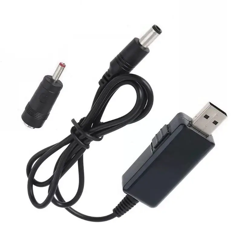 Кабель перетворювач USB-DC для роутера 9V/12V до 0,7А з перемикачем, живлення від PowerBank, DC 5.5×2.1 з перехідником