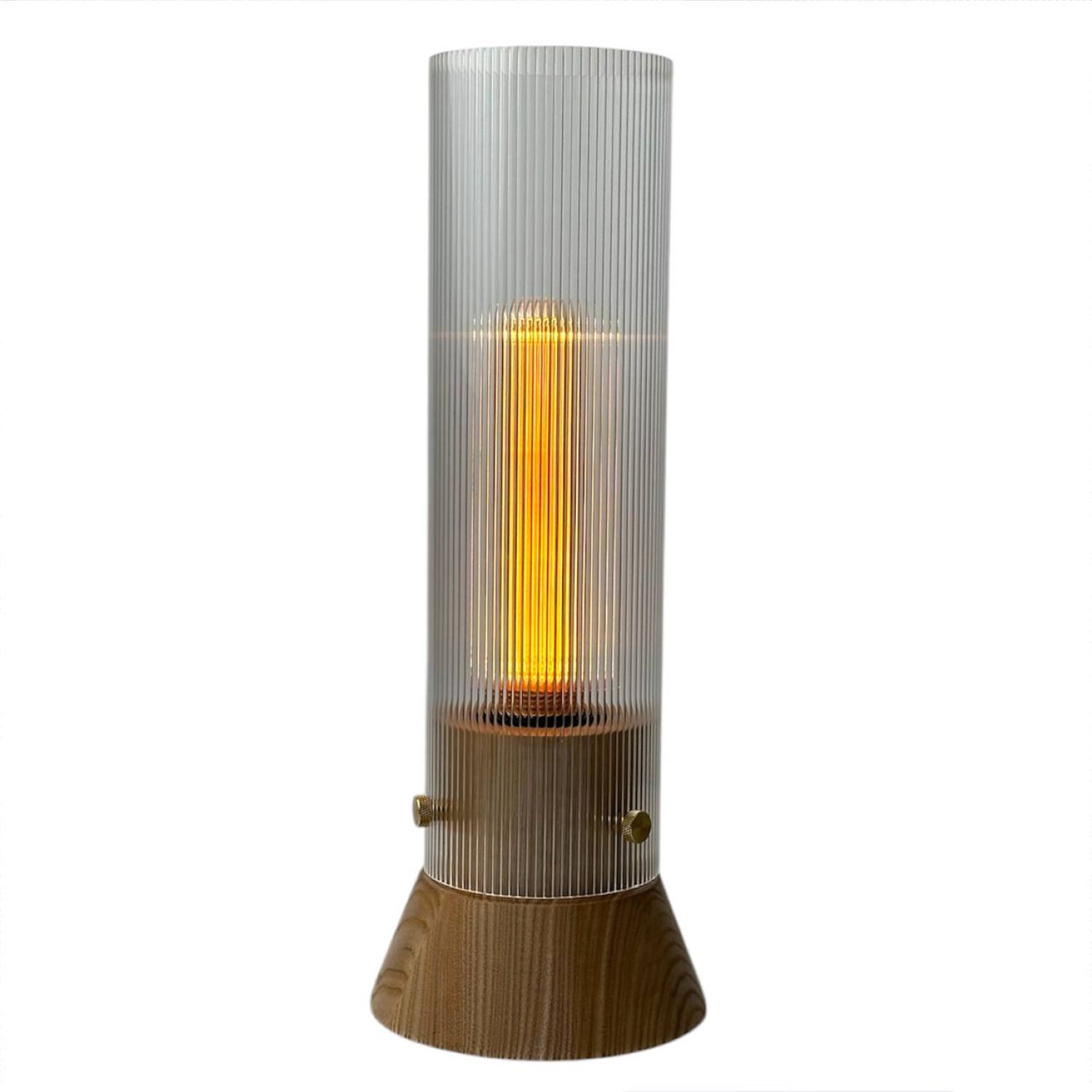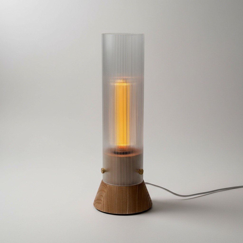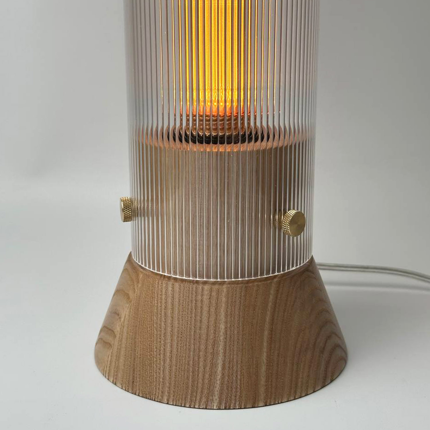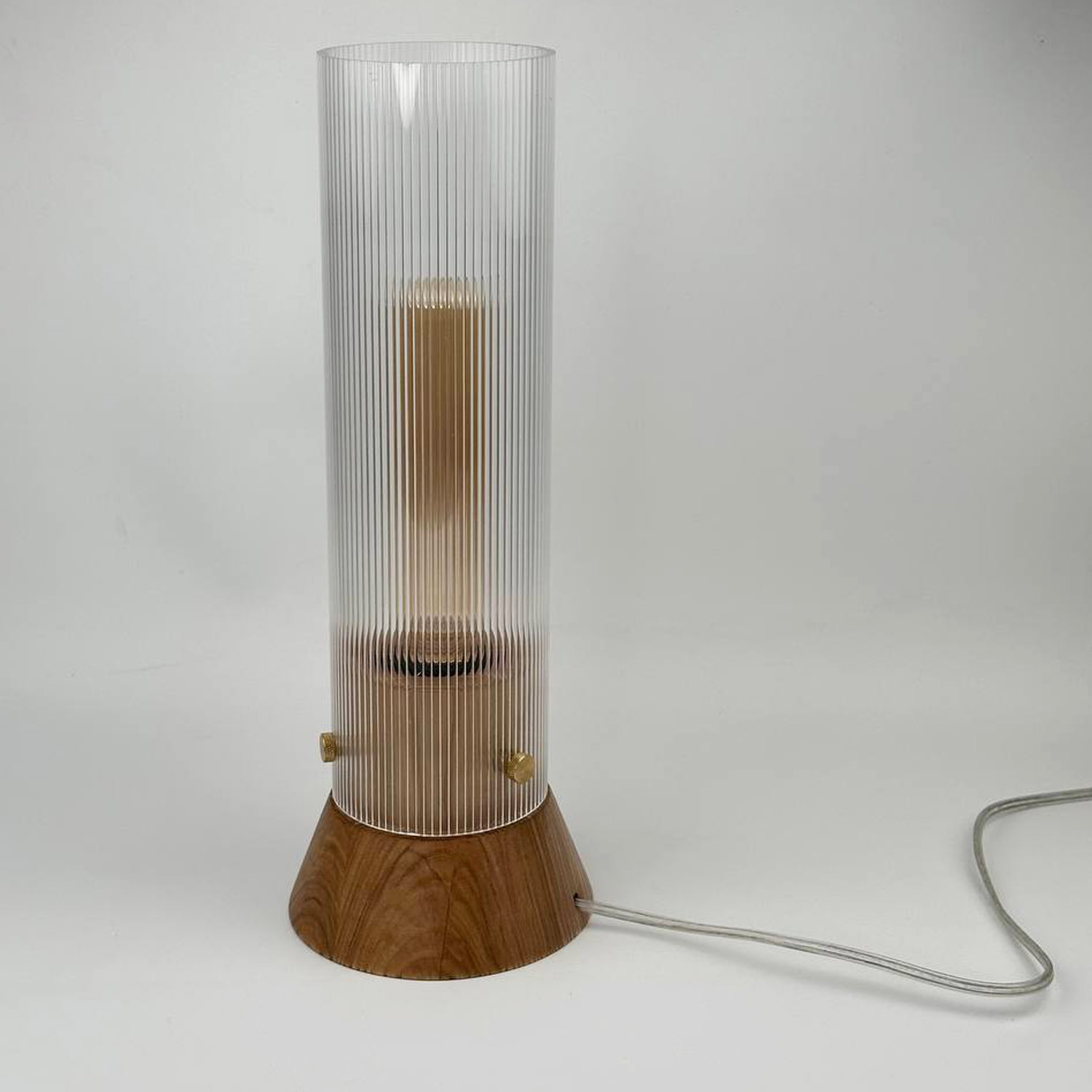 Елегантний настільний світильник із рифленої акрилової труби – це поєднання сучасного стилю та витонченості. Завдяки прозорій текстурі він створює м'яке розсіяне світло, надаючи інтер'єру легкість. Основа з натурального дерева додає теплоти та затишку. Світильник чудово впишеться в інтер'єр, оформлений у сучасному чи скандинавському стилі.
