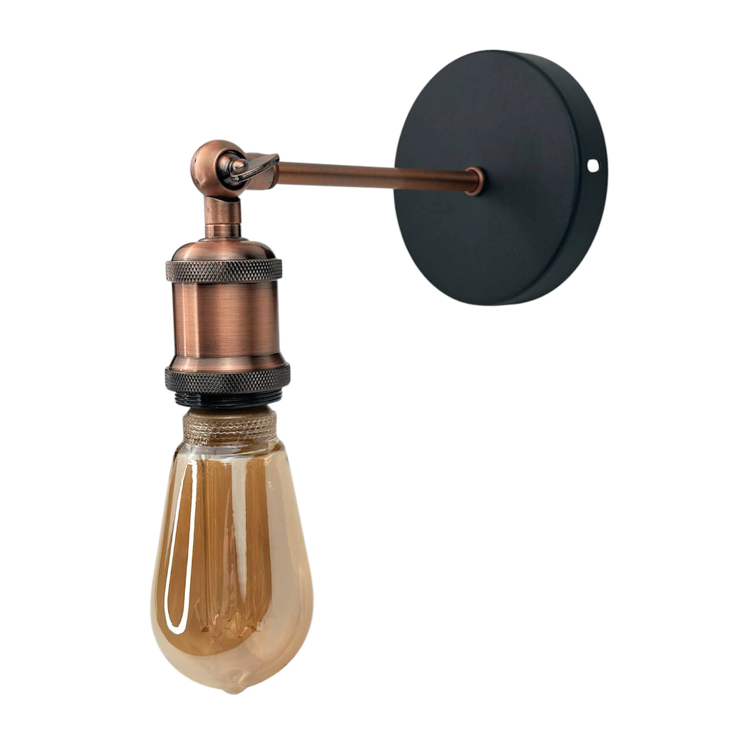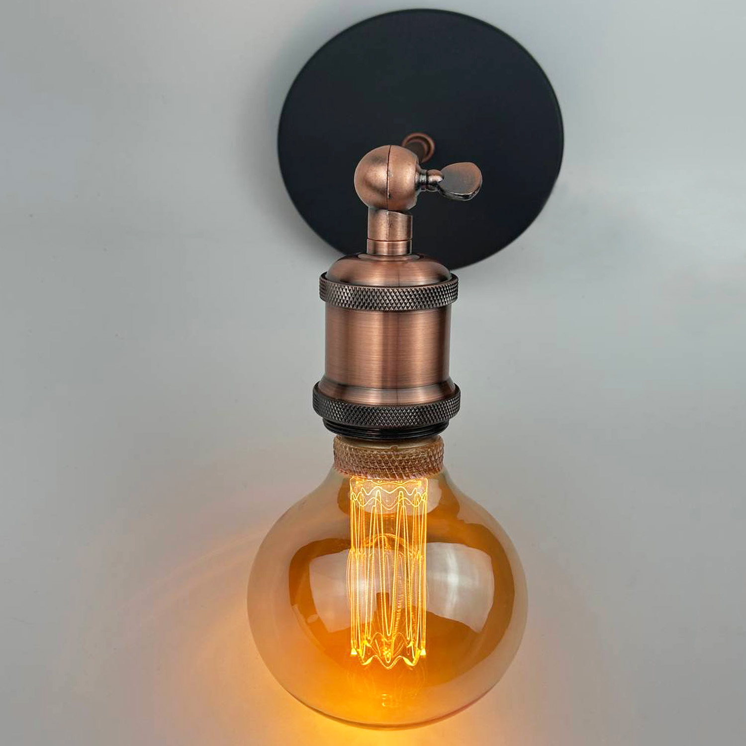Це оригінальне бра в стилі лофт стане чудовим доповненням до сучасного інтер'єру. Металева основа чорного кольору контрастує з іншими деталями в кольорі червона бронза, створюючи виразний та стильний вигляд. Відкритий патрон підкреслює естетику лофту та дозволяє використовувати декоративні лампи Едісона, які додадуть особливого затишку.