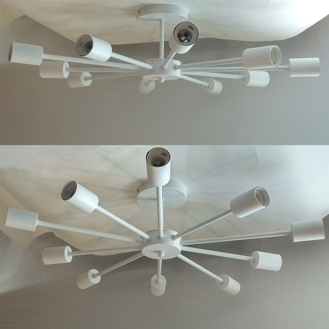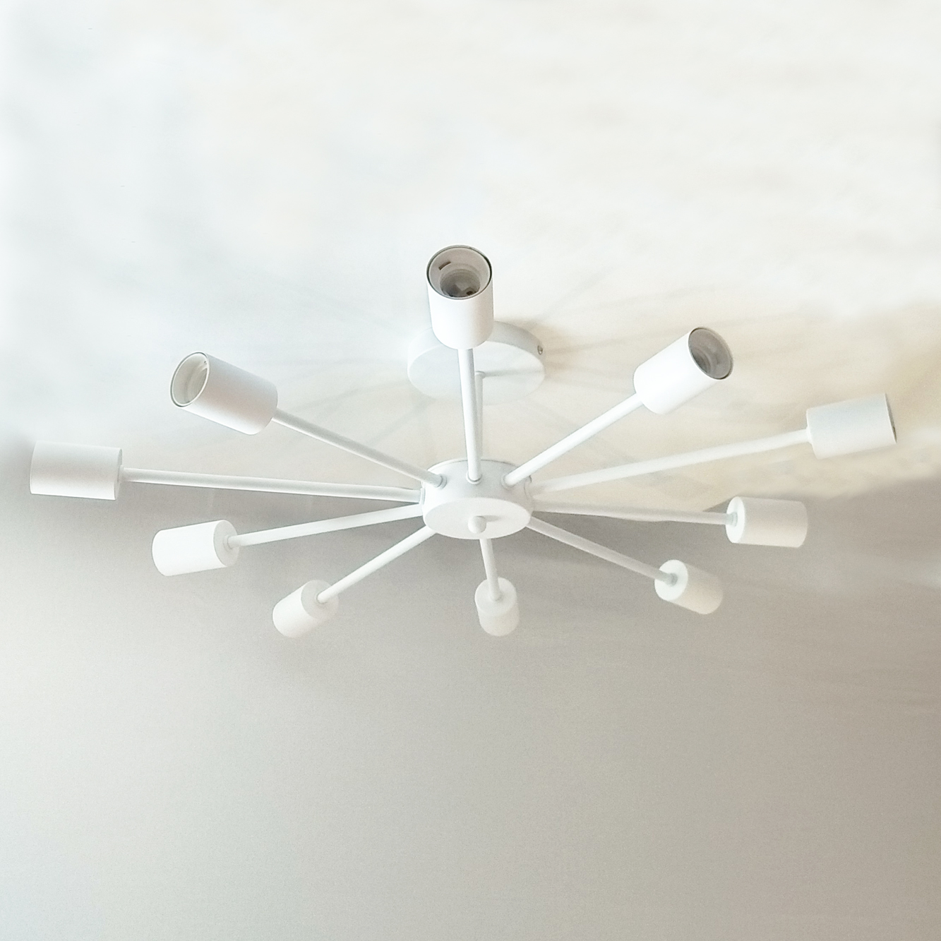 Люстра лофт Промінь із білими патронами - це стиль життя, дух свободи та творчості, відмова від загальноприйнятих норм та необмежений простір для самовираження. Може виготовлятися у трьох варіантах на 10, 8 та 6 лампочок.