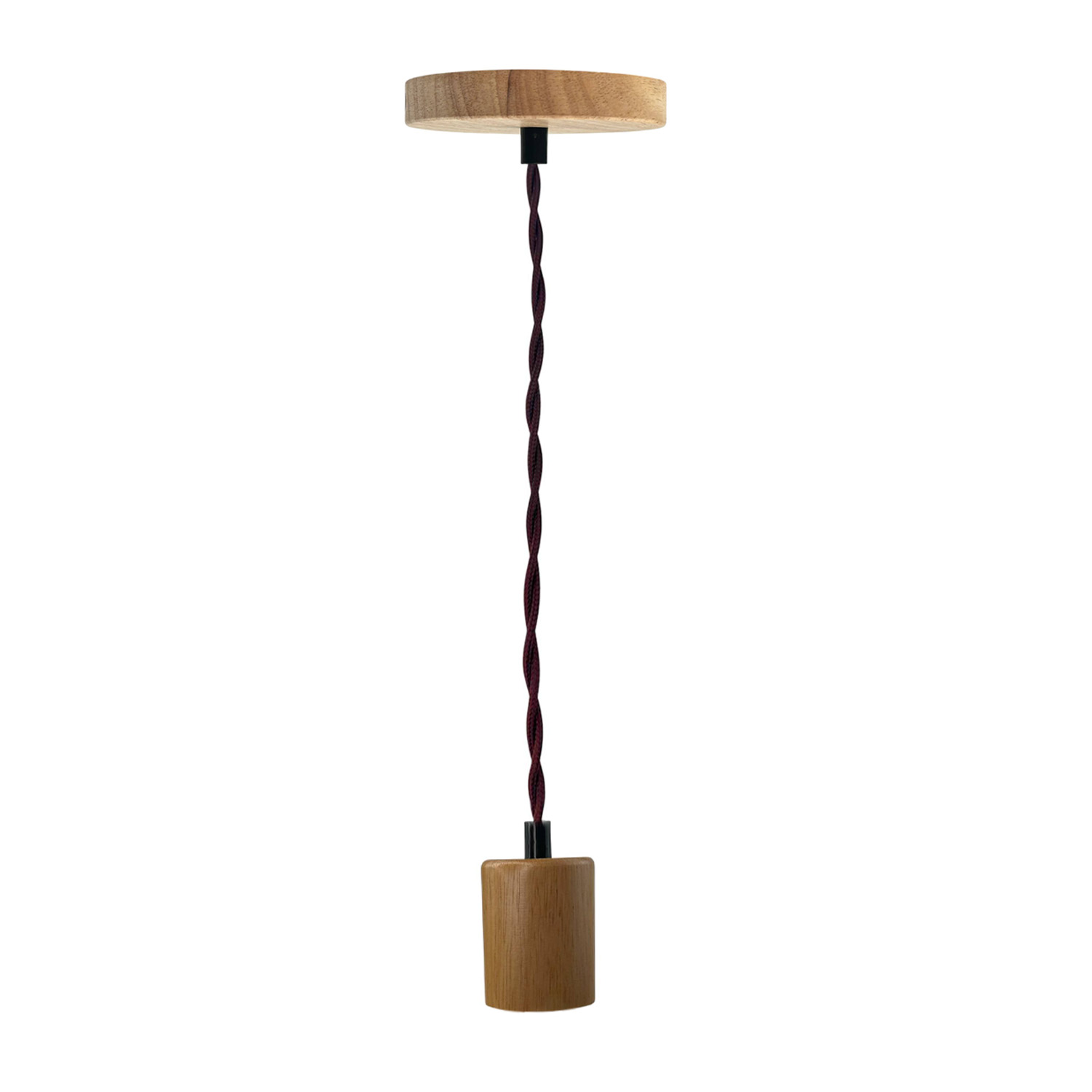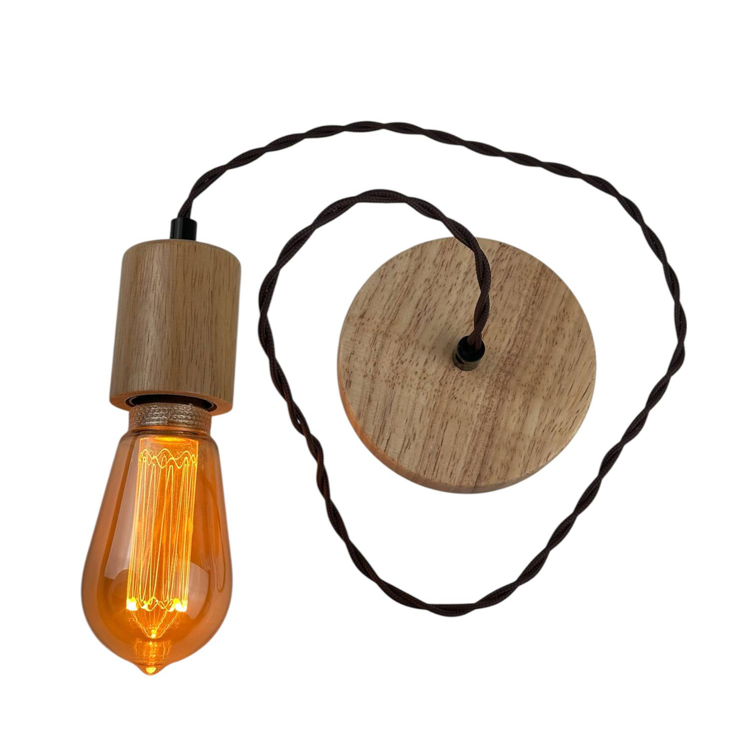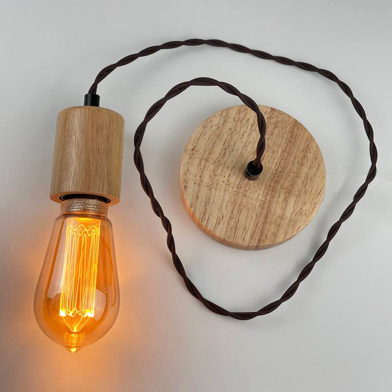 Світильник дерев'яний Woody Craft з коричневим крученим дротом
