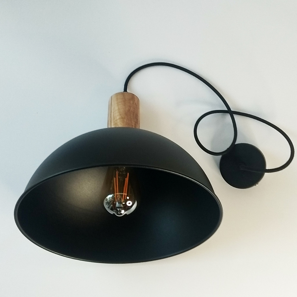 Світильник в скандинавському стилі ST №17 з дерев'яним патроном та металевим абажуром