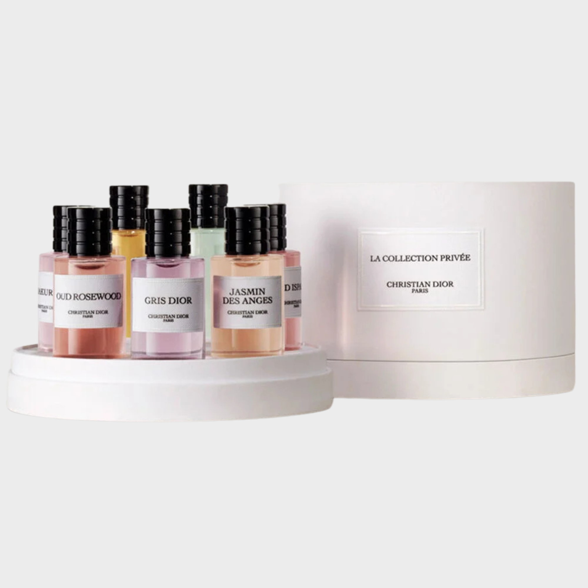 Відкрийте для себе легендарні аромати La Collection Privée Christian Dior, представлені у фірмовому наборі від кутюр від Дому Dior. Ці мініатюри парфумів, які можна колекціонувати, ділитися чи зберігати, втілюють сміливий і вільний світ ароматів Dior.