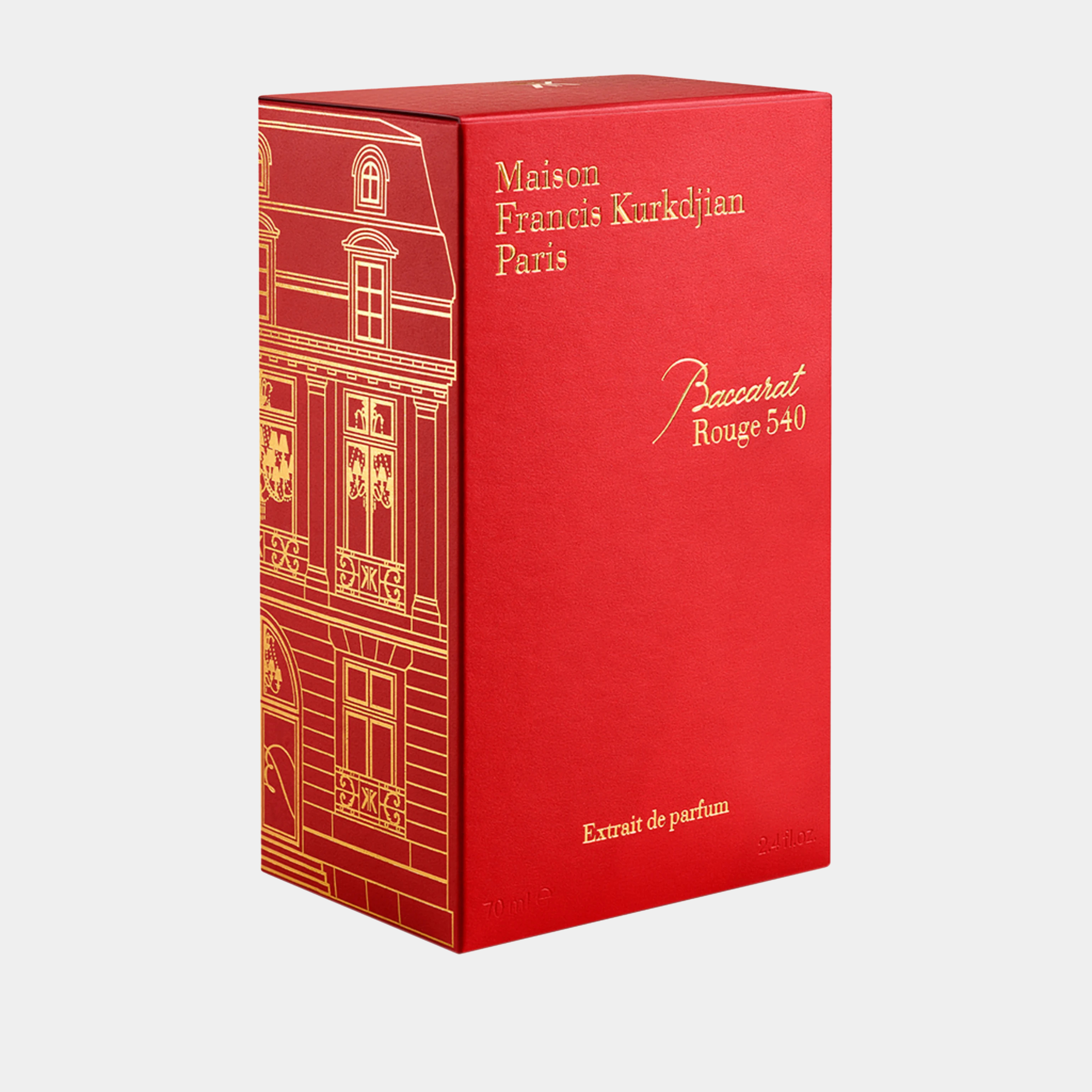 Baccarat Rouge 540 Extrait de Parfum - аромат, що підсилює силу та сяйво трьох основних інгредієнтів композиції однойменної парфумованої води, залишаючись вірним першоджерелу натхнення. Ця парфумована вода з елегантним деревним характером є живим вираженням майстерності парфумера, що вдосконалювалася протягом багатьох років, і справжнім проривом для Френсіса Куркджяна. У верхніх нотах можна почути делікатний спокусливий аромат жасмину великоквіткового, доповнений пудровими і приємними відтінками гіркого мигдалю. Нарешті, мінеральна нота амбри приборкується амбровим і деревним акордом. Інтенсивність екстракту підкреслюють чарівні відблиски світла в елегантній пляшці. Його яскраво-червоний колір є відсиланням до естетики культової кольорової гами Baccarat. Парфумована вода Baccarat Rouge 540 Maison Francis Kurkdjian є справжнім втіленням симбіотичної сили дорогоцінної композиції, яку може створити лише майстерне мистецтво парфумерії, відшліфоване роками.